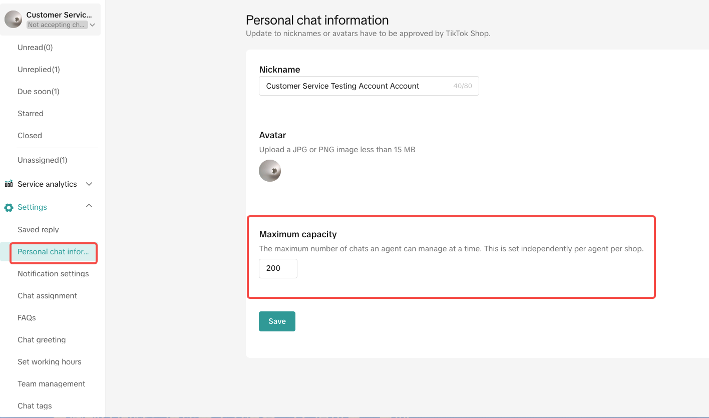 客服专员可在【顾客消息-设置-个人信息设置-最大接待量】中设置。