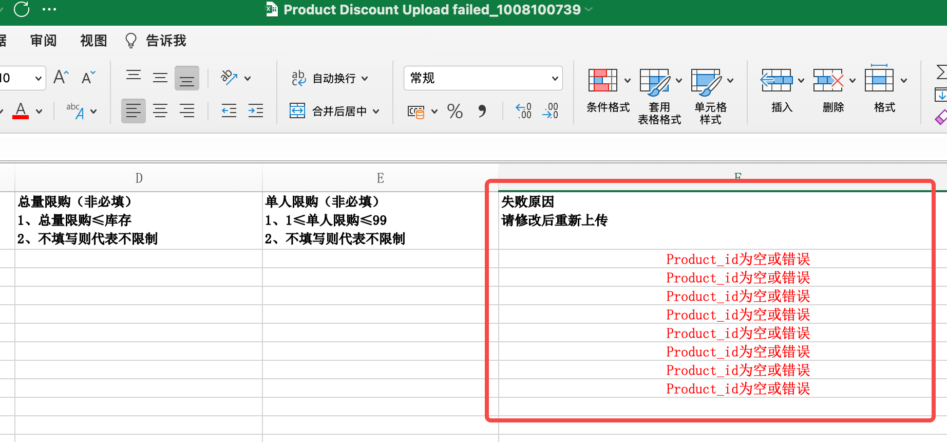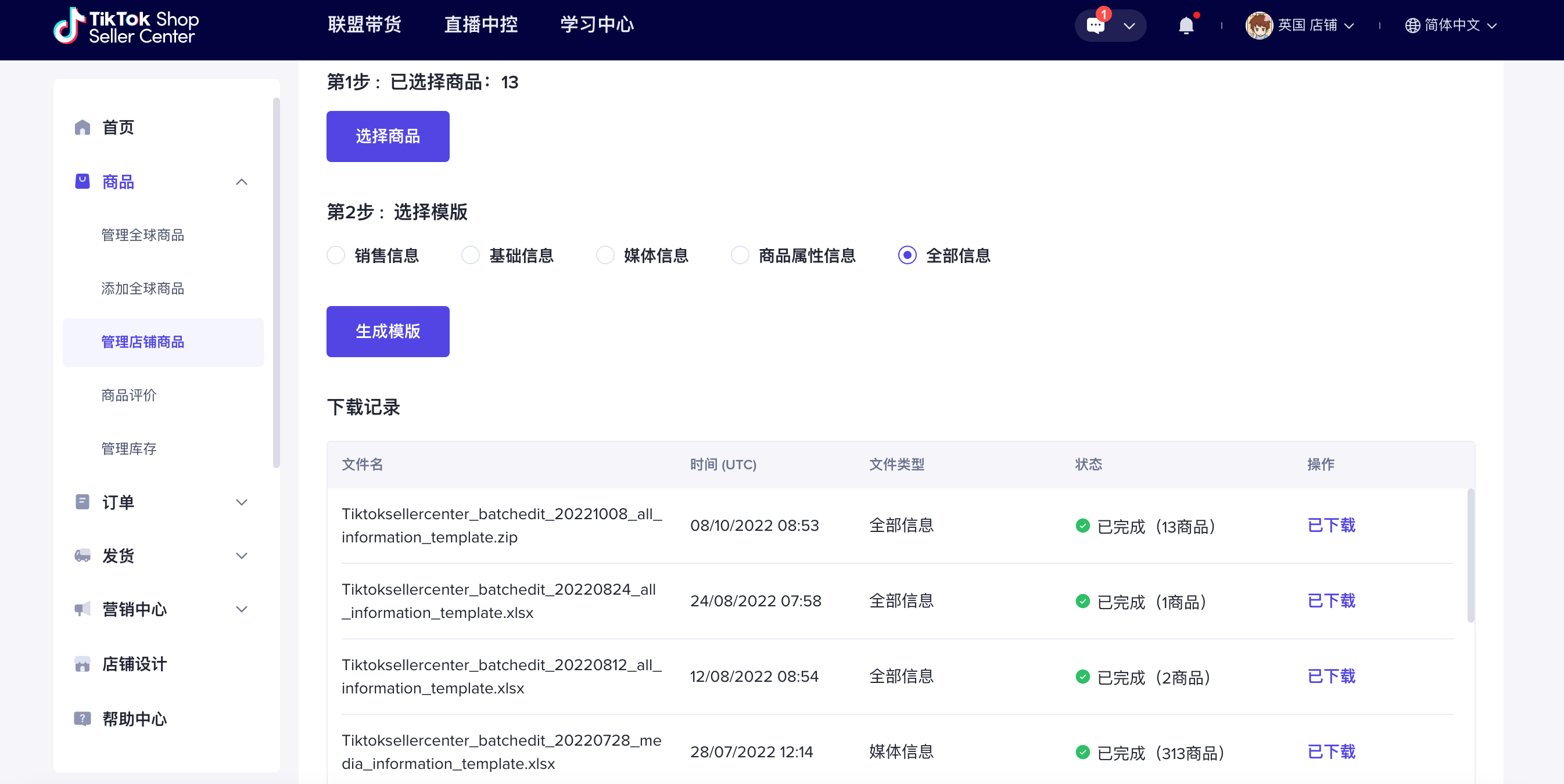 批量上传模板中需要产品 ID 或 SKU ID。 要从您的产品列表中导出此内容: