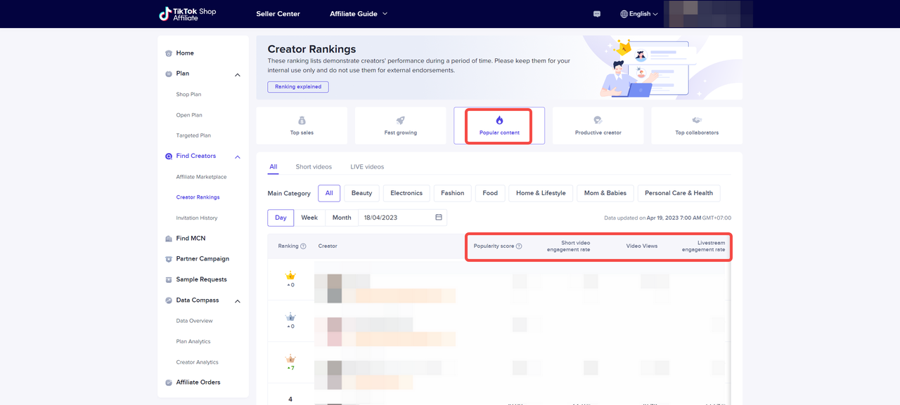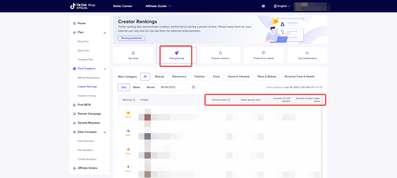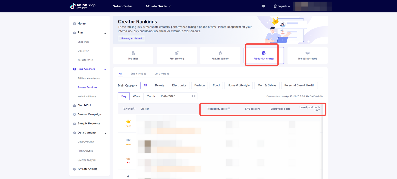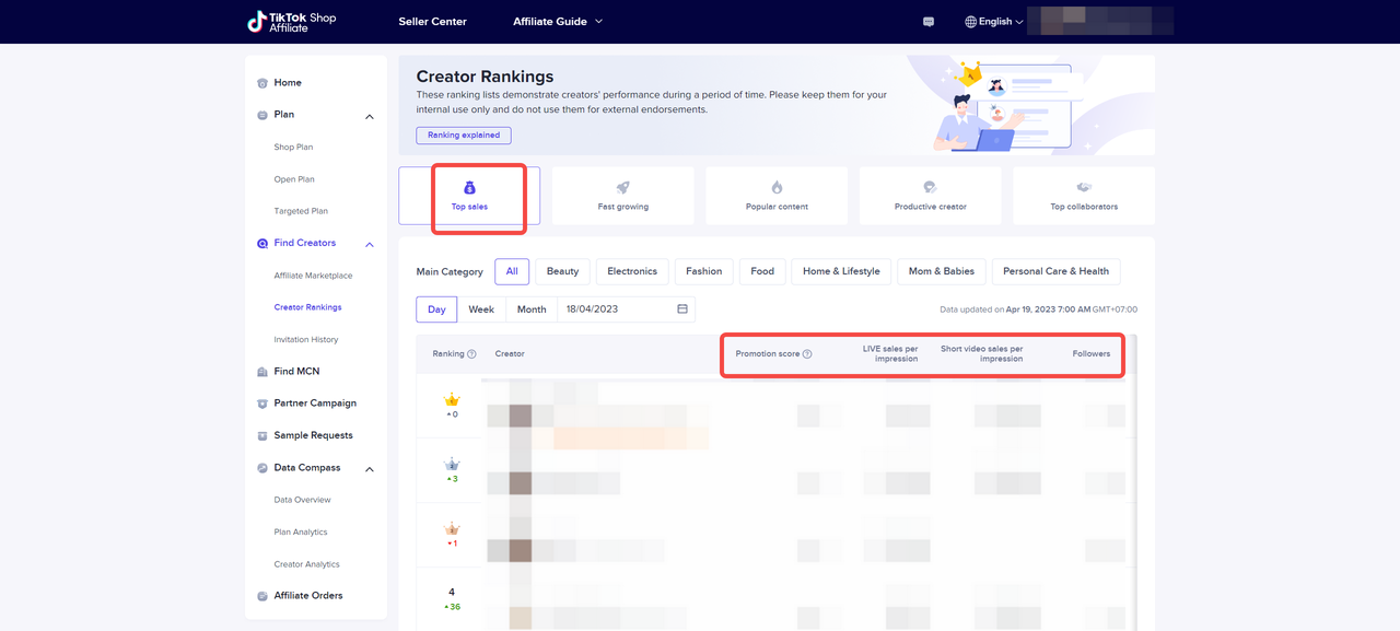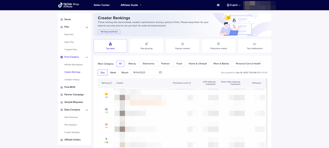 为保障榜单对商家经营的实际使用价值,平台将达人的带货类目作为筛选项,帮助商家参考与主营类目匹配的达人。