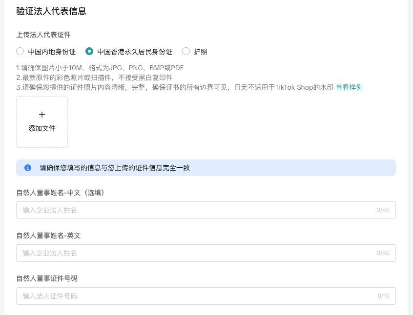 法人证件(中国内地身份证/中华人民共和国香港特别行政区永久居民身份证/护照)