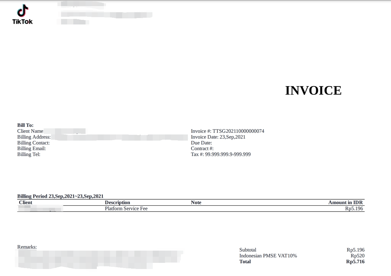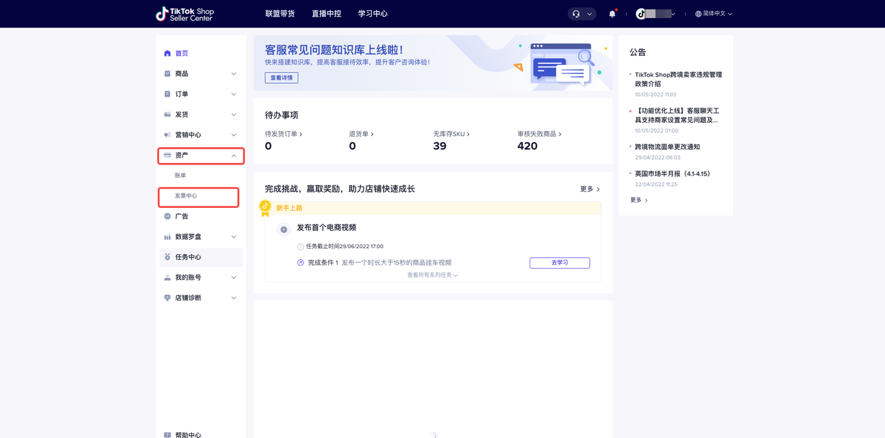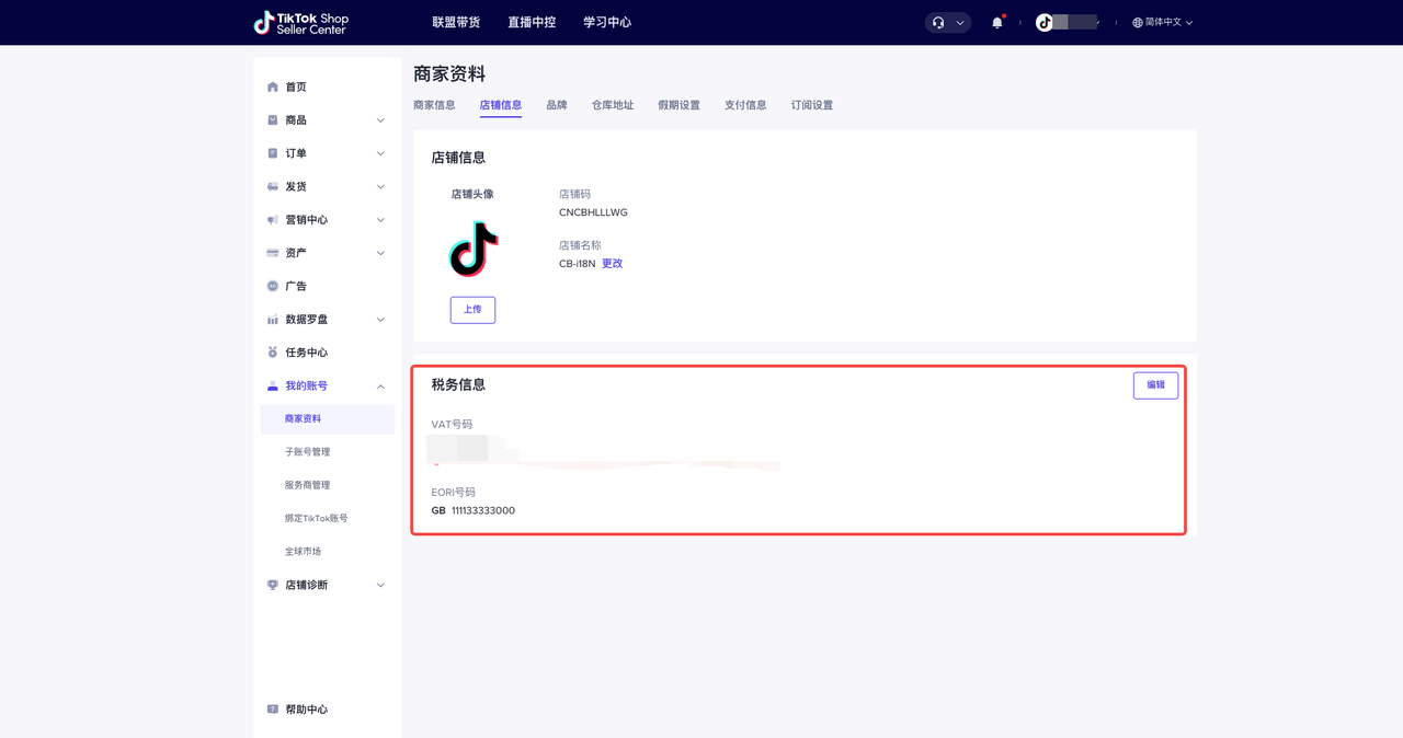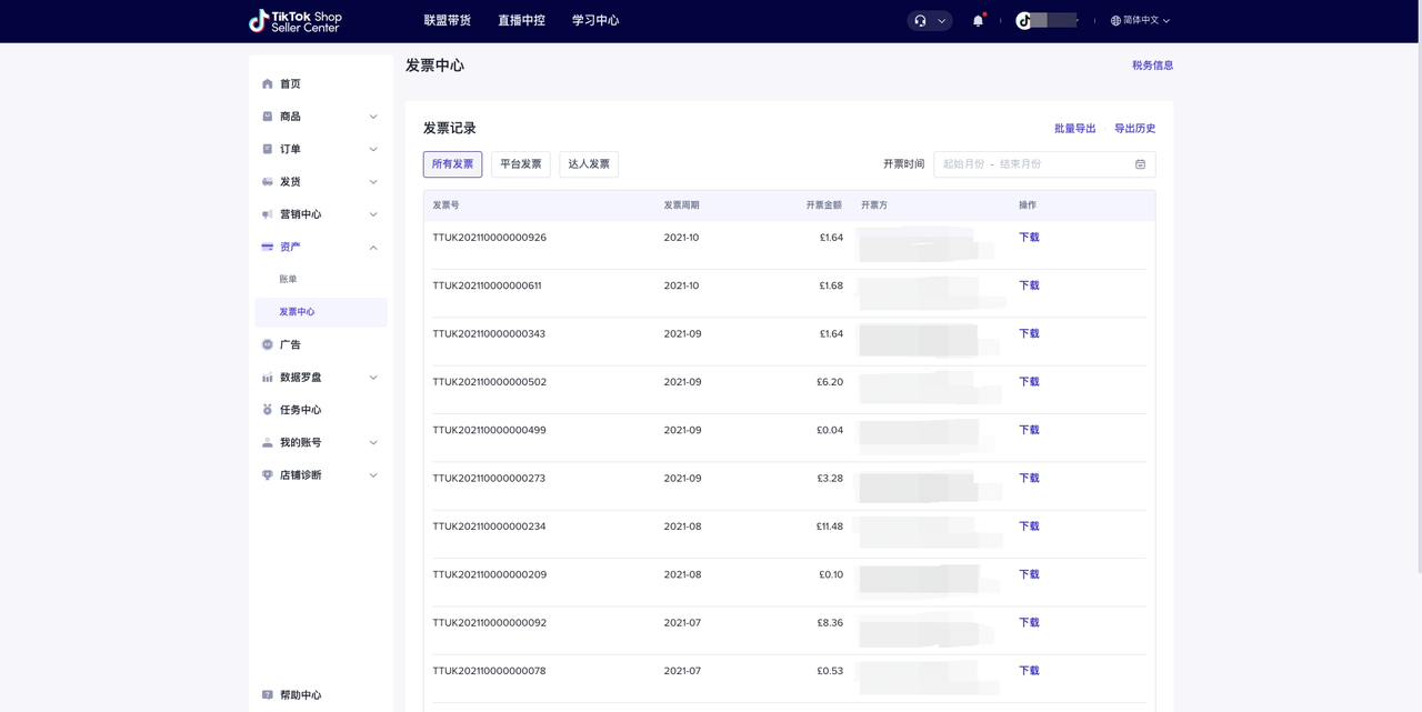 商家需要填写店铺信息-税务信息以获得完整的发票。