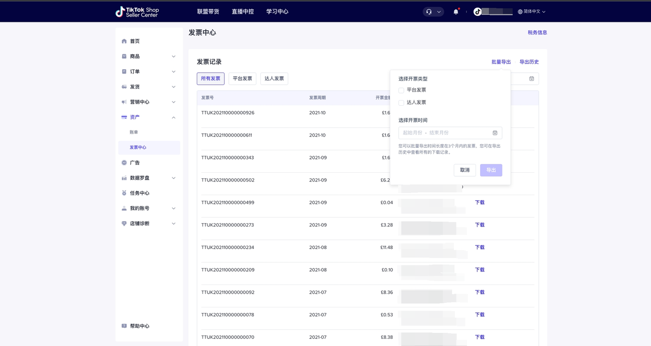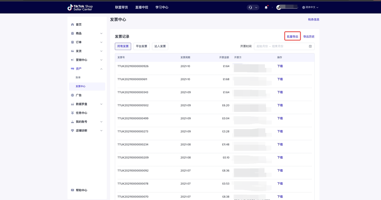 商家可以在商家后台-资产-发票中心中查看并下载您的税务发票。