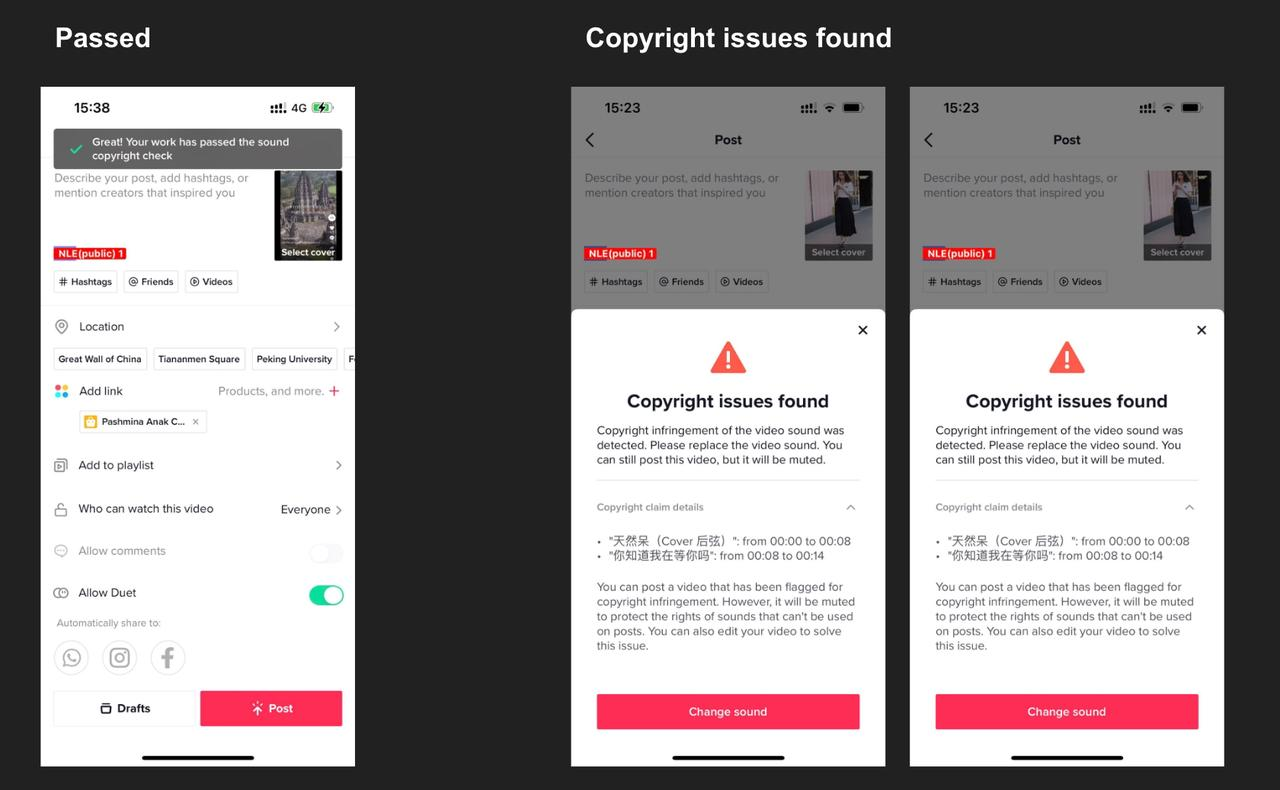 1.(不推荐)用户依旧可以坚持发布该视频,但视频会被静音。