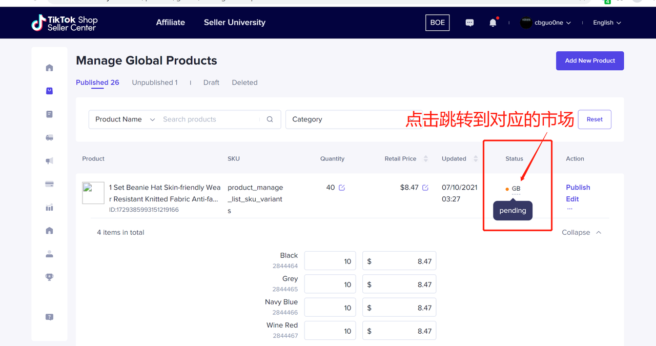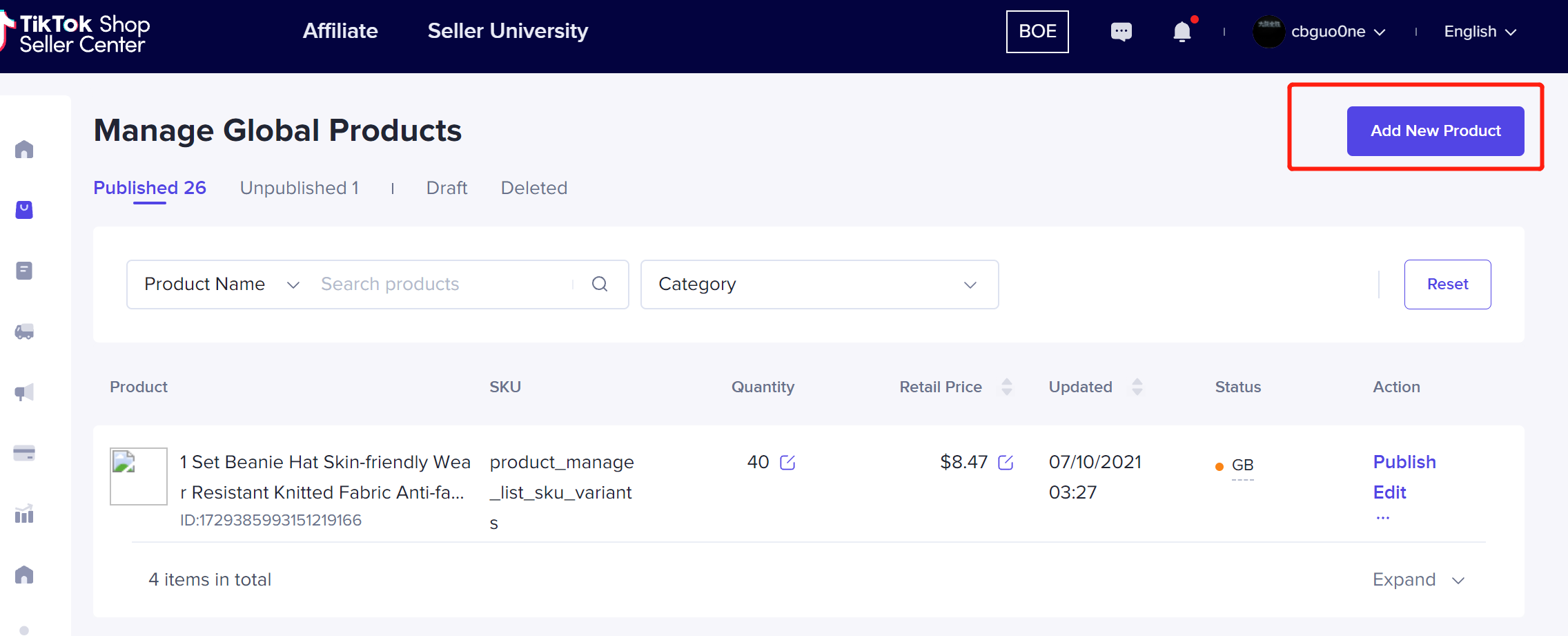 · 您只能在TikTok Shop商家后台进行全球商发布到店铺商品