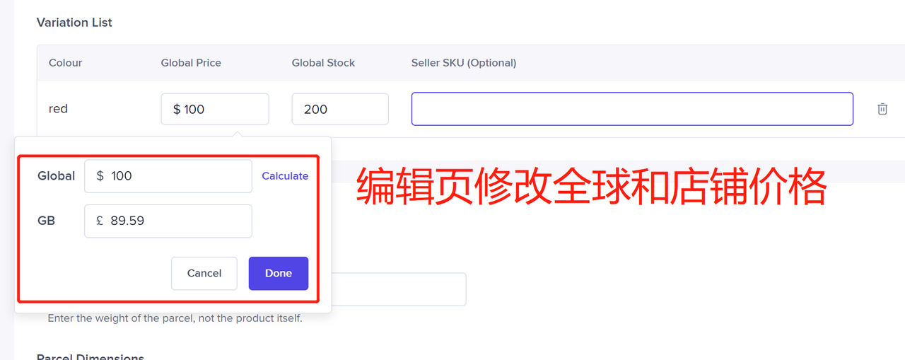 价格:全球商品的价格是全球价格,单位为美元,当全球商品发布到店铺时,系统会将货币转化为店铺当地市场的货币,并且会自动计算税后价; 店铺商品的价格可以修改,修改之后不会影响到全球商品的价格;