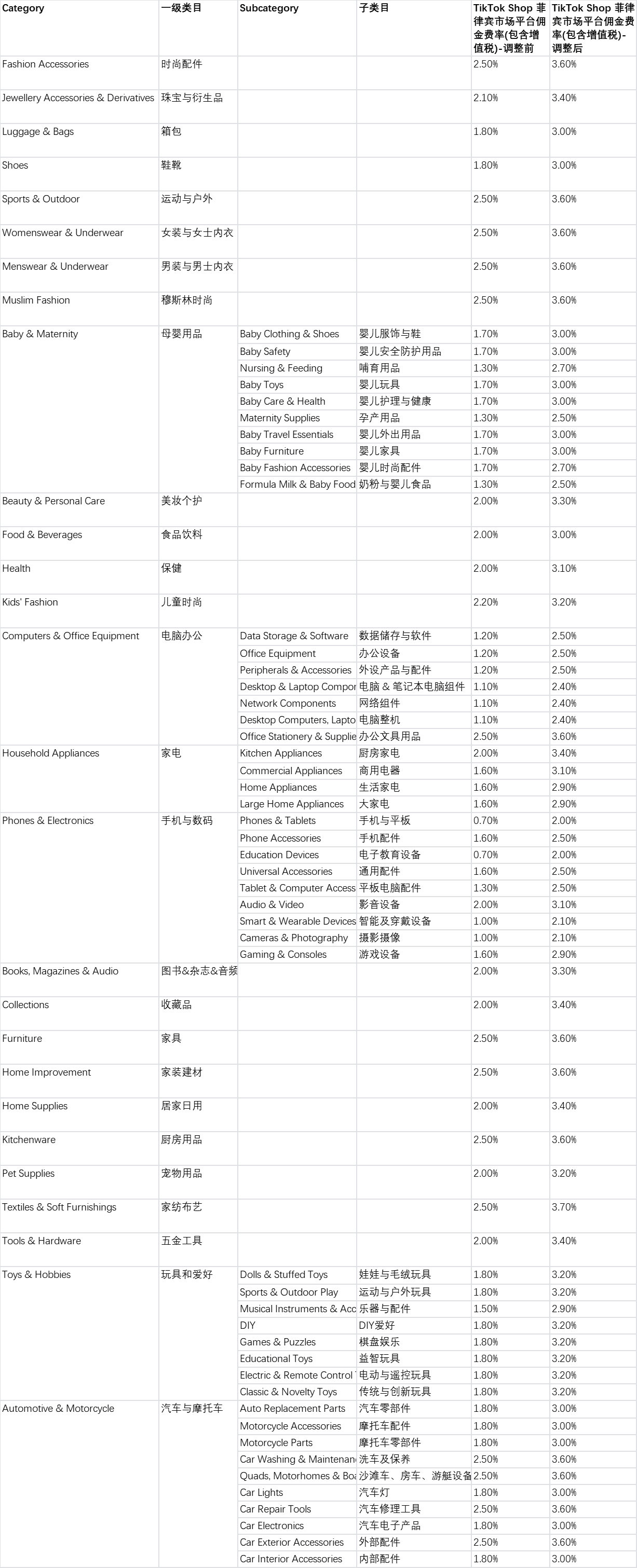 交易手续费将会适用于所有菲律宾跨境及本土商家,所有的订单及商品类目都将生效。