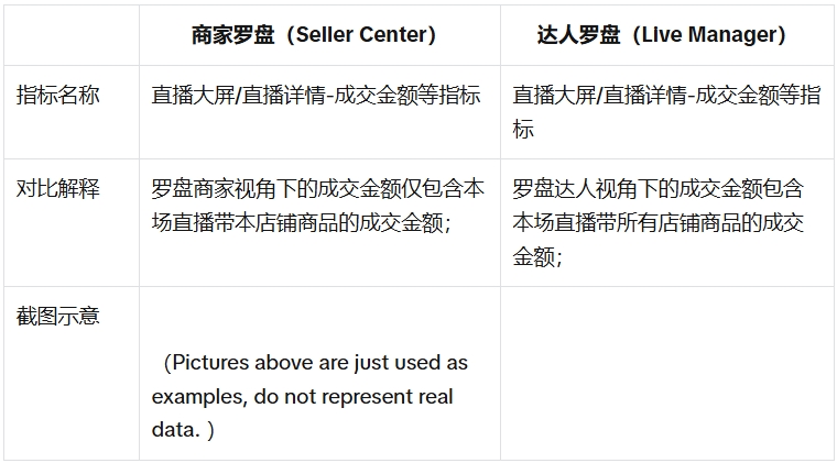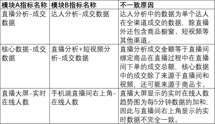 更新时间不同导致直播大屏的成交金额可能低于直播分析-直播列表中同一场直播的成交金额。