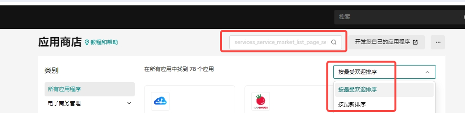 您也可以根据应用名称和服务商名称来搜索应用,应用的排序方式可以按照最受欢迎/最新的方式呈现出来。