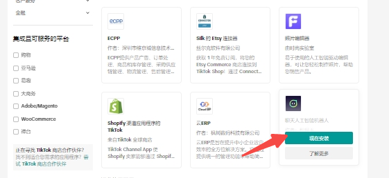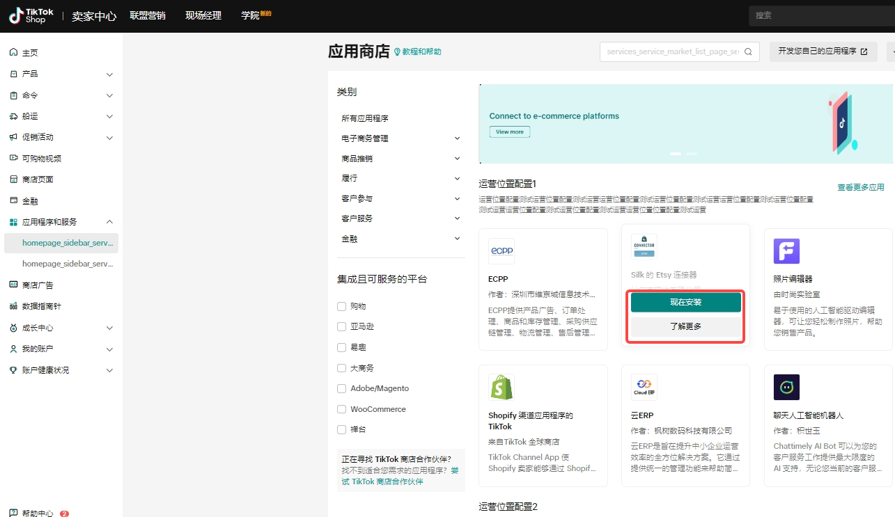 为了帮助您在 TikTok 上提升业务并提高运营效率,TikTok Shop 现在提供了一个应用市场,您可以在其中浏览和授权安装满足您需求的应用,促进生产力的提高。