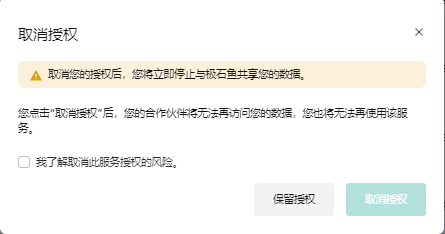 请注意:您点击"取消授权"后,您的合作伙伴将无法再访问您的数据,您也将无法再使用该服务。