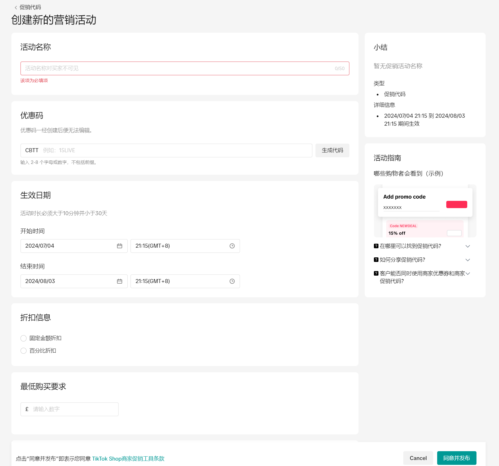 最低购买要求:即用户订单达到此门槛后才可使用该code