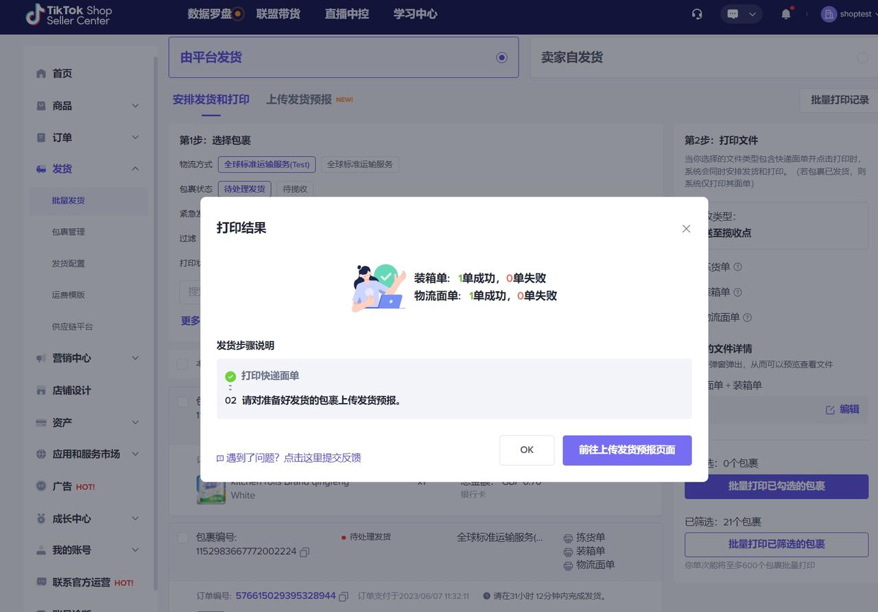 TikTok Shop Seller Center-发货-批量发货-安排发货和打印