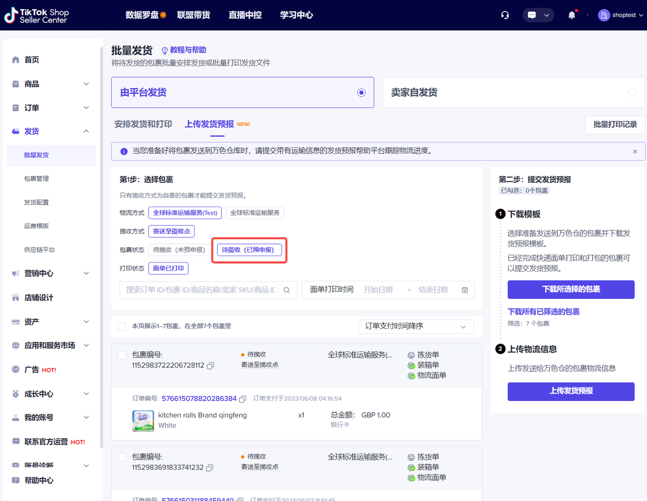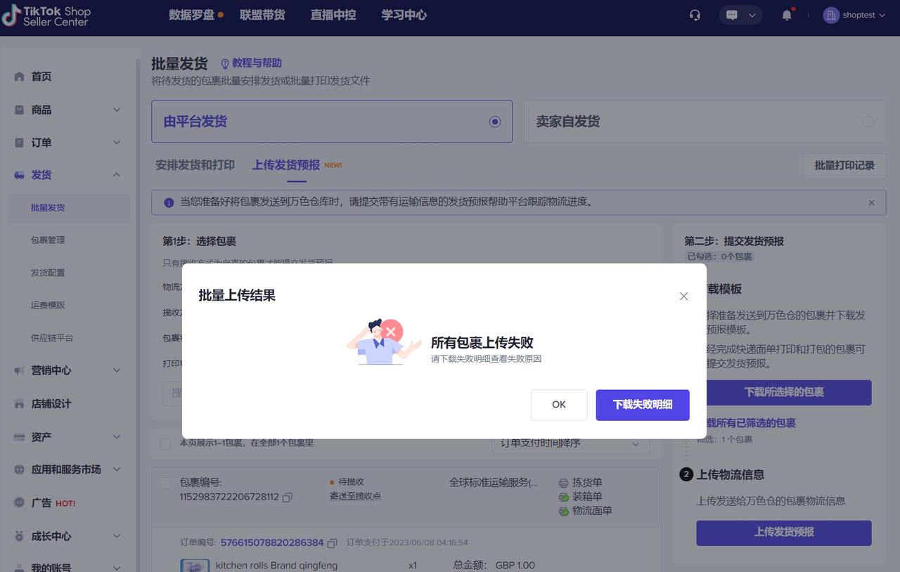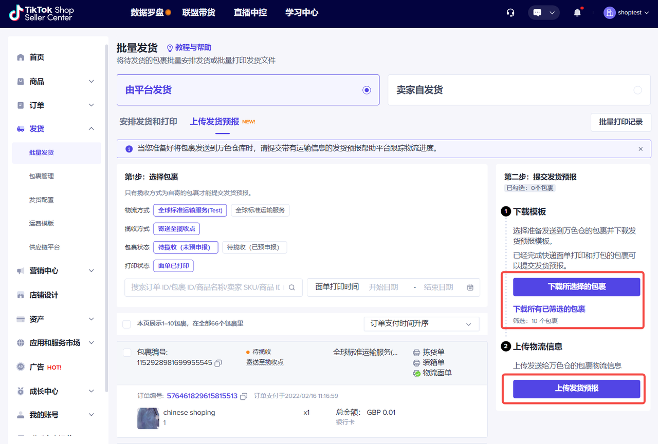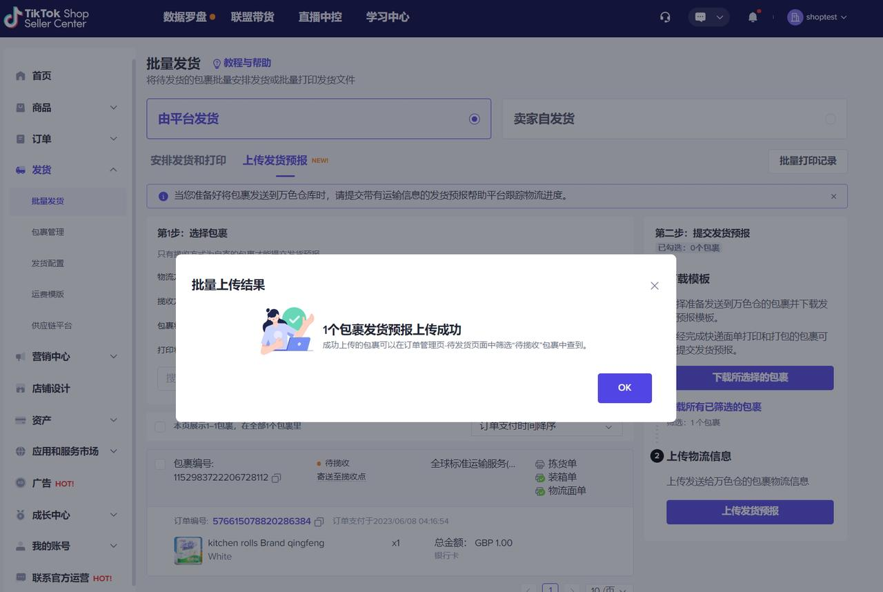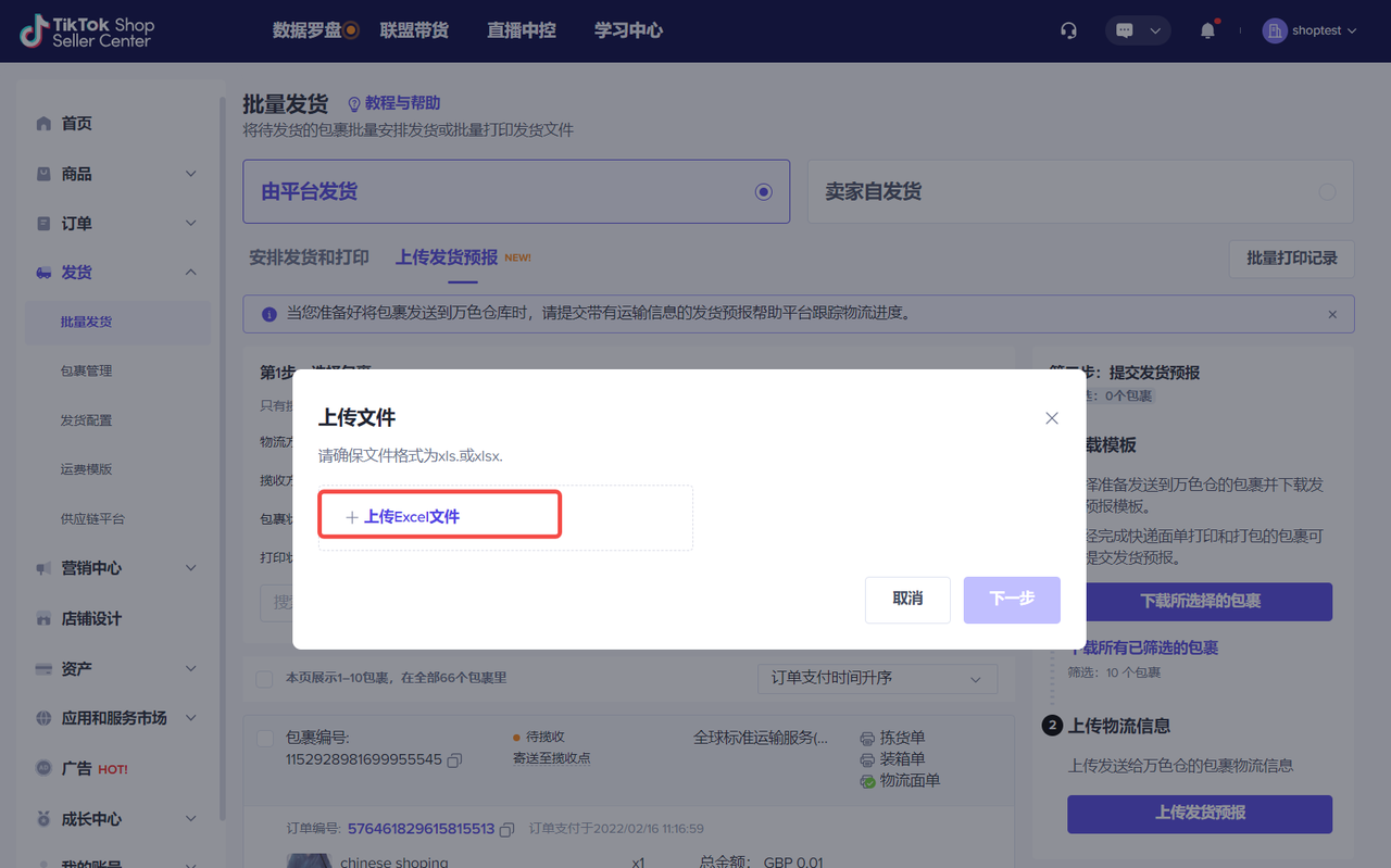 TikTok Shop Seller Center-发货-批量发货-上传发货预报