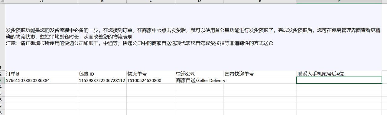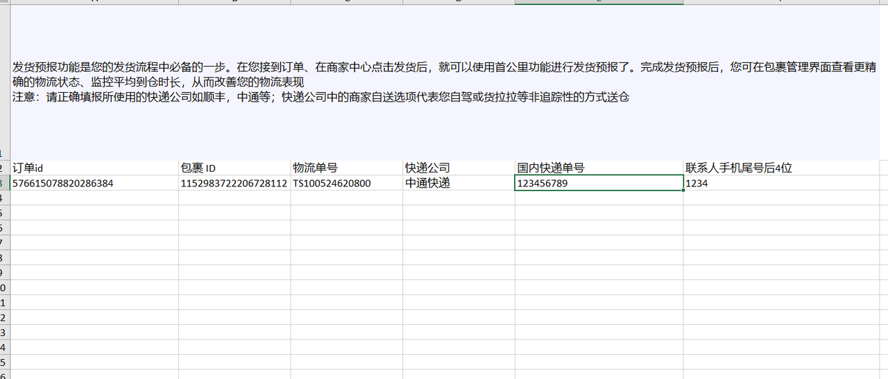 步骤二:填写发货预报模板