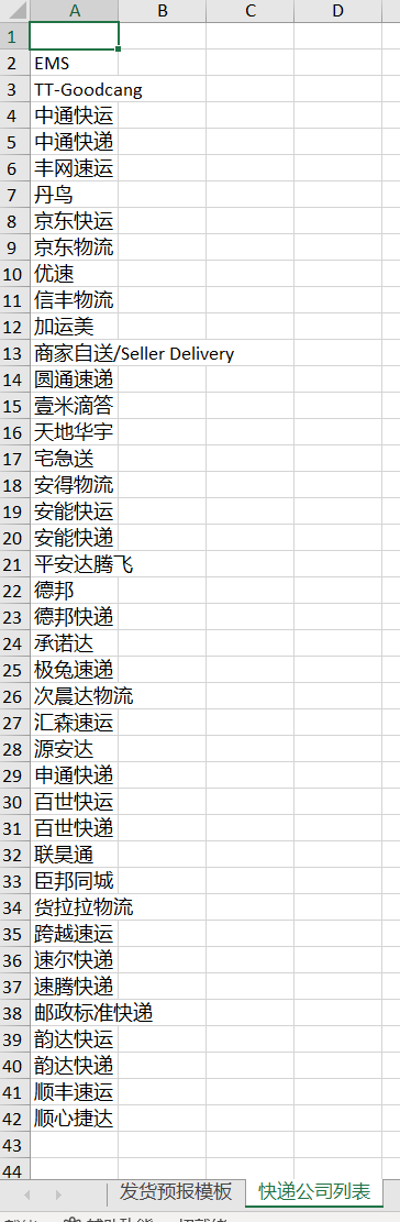 2、快递公司必须为可选快递公司,且名称不能写错。