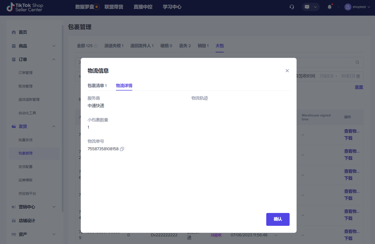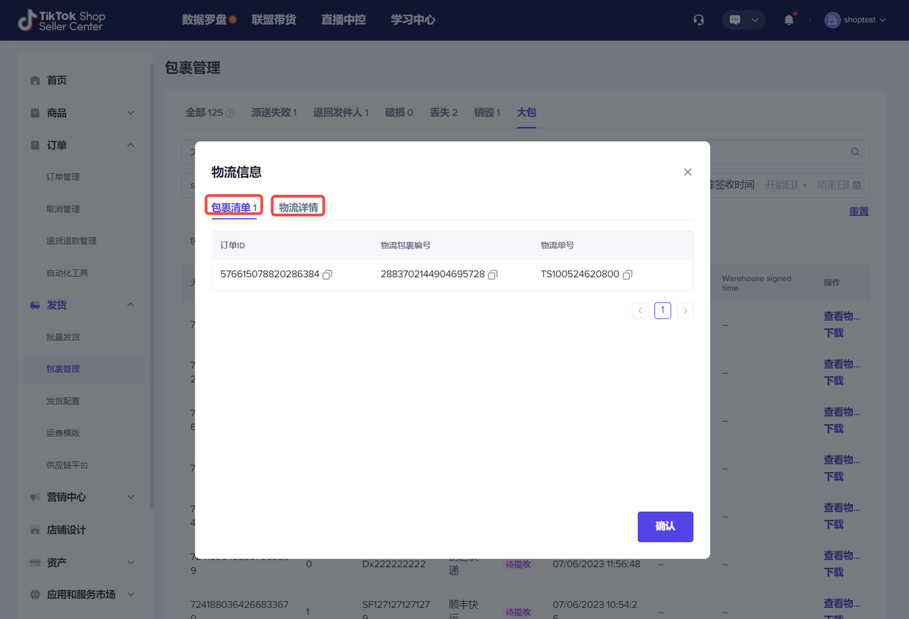 上传发货预报成功后,可在包裹管理-大包 页面查询已上传的发货预报中的包裹明细和物流轨迹详情。