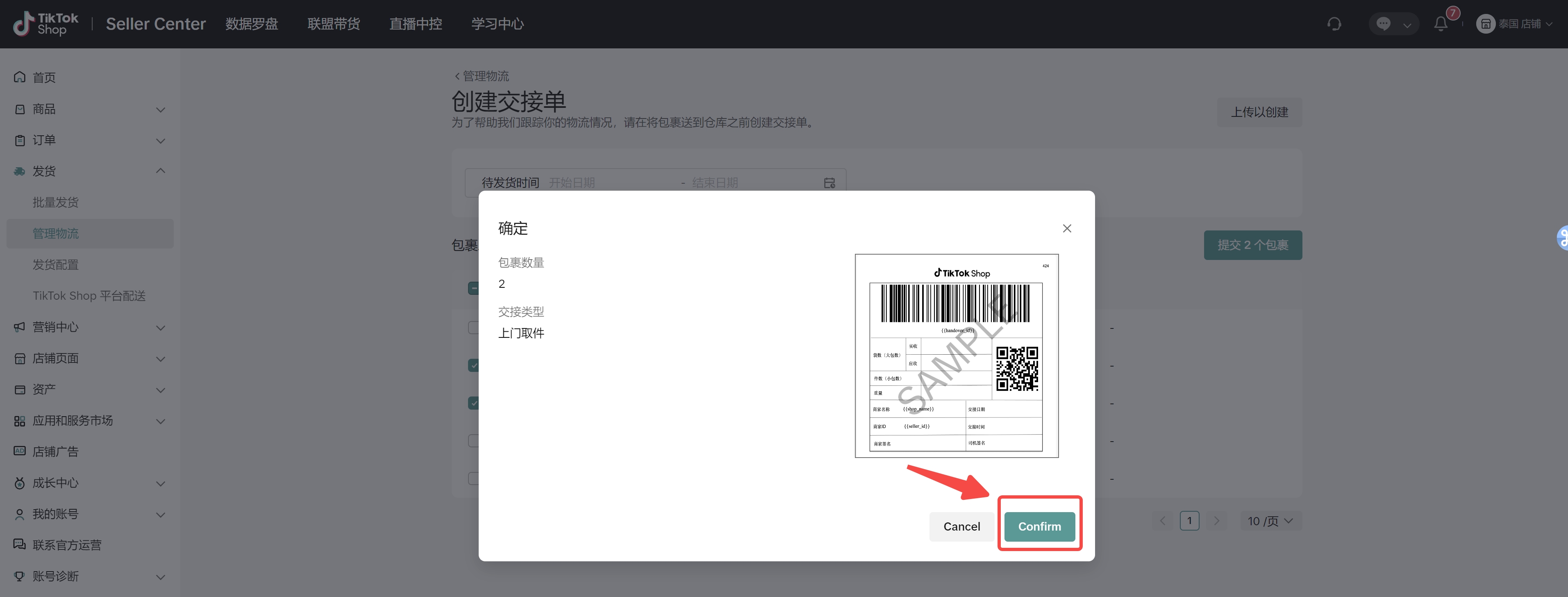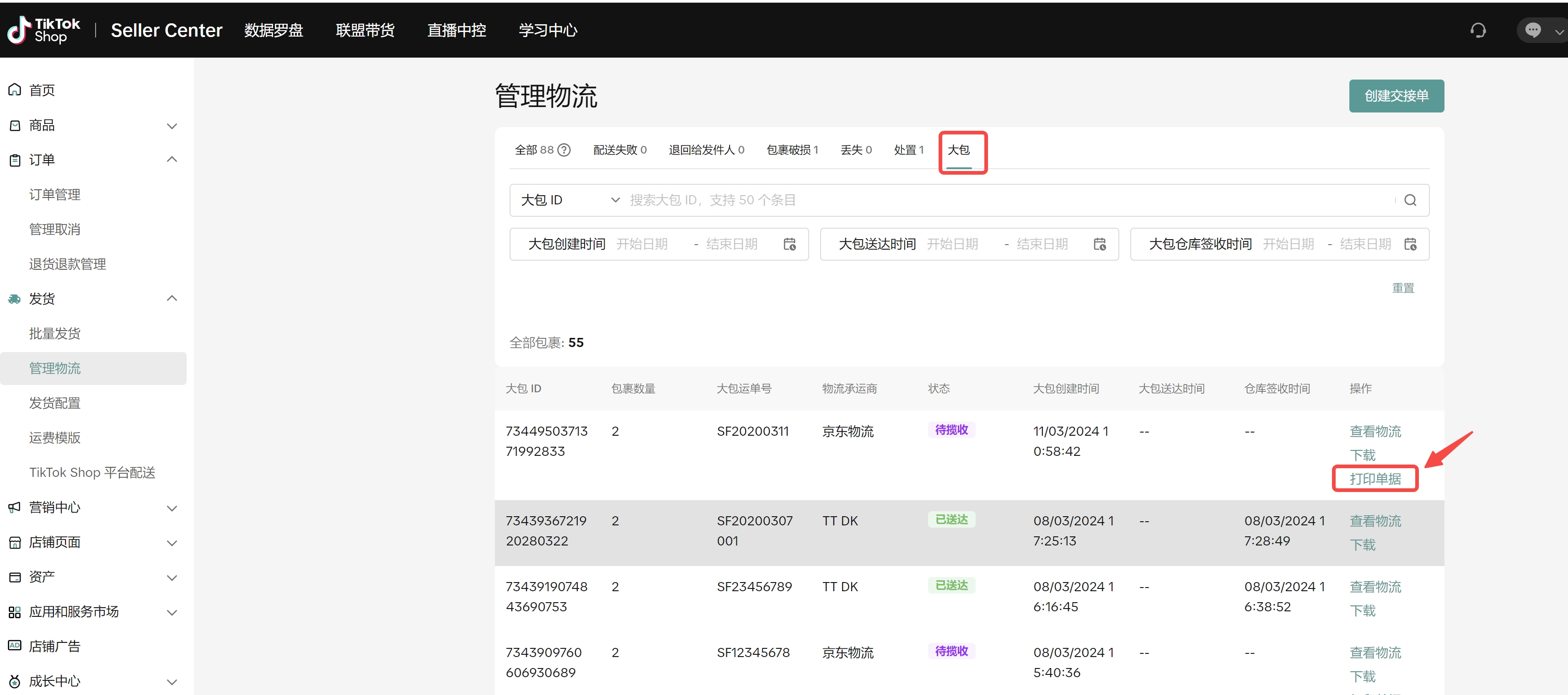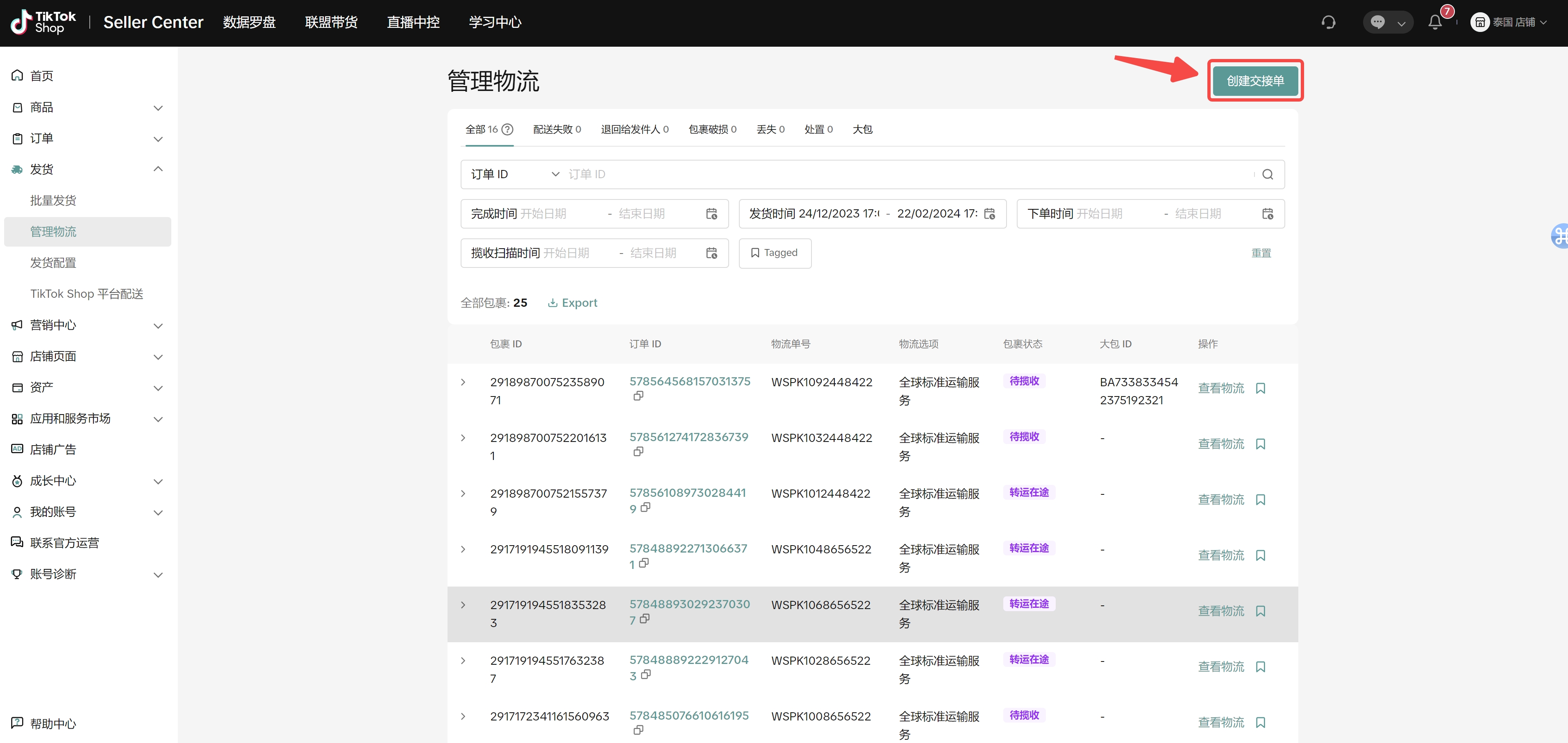 TikTok Shop Seller Center-发货-管理物流-创建交接单