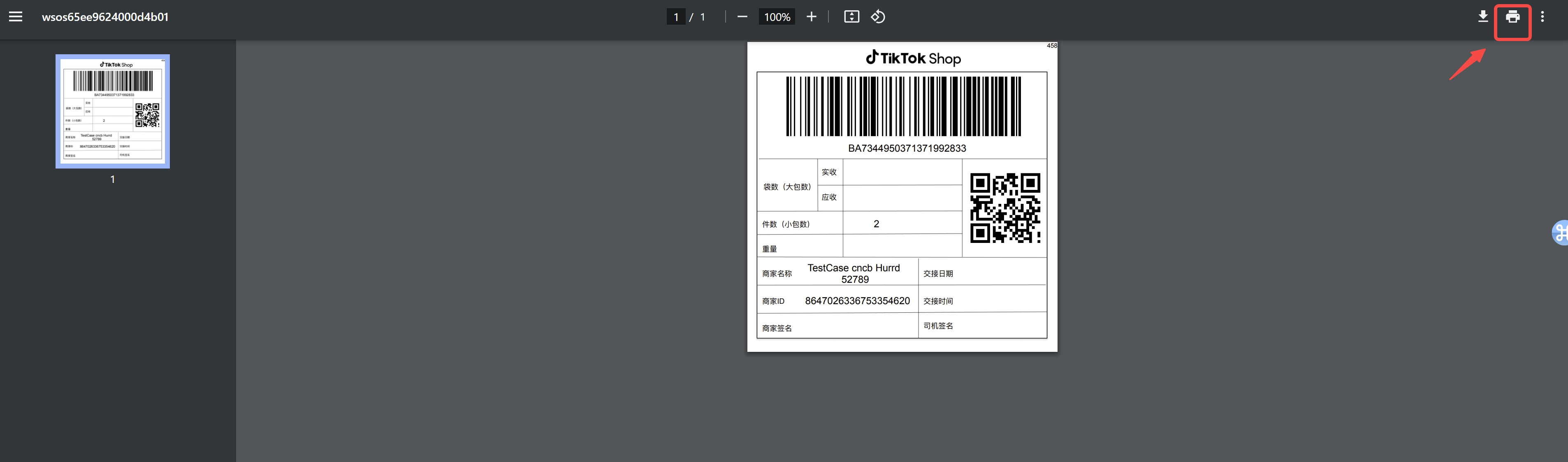 系统自动弹出交接打印页面,点击打印,打印交接单。