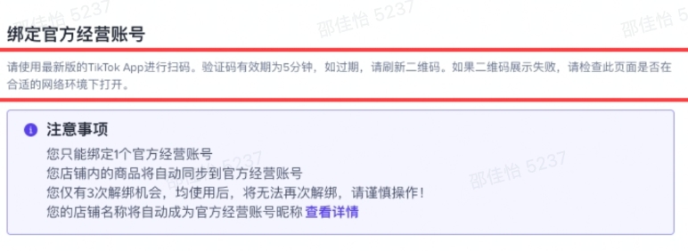 每个店铺仅能绑定一个官方账号