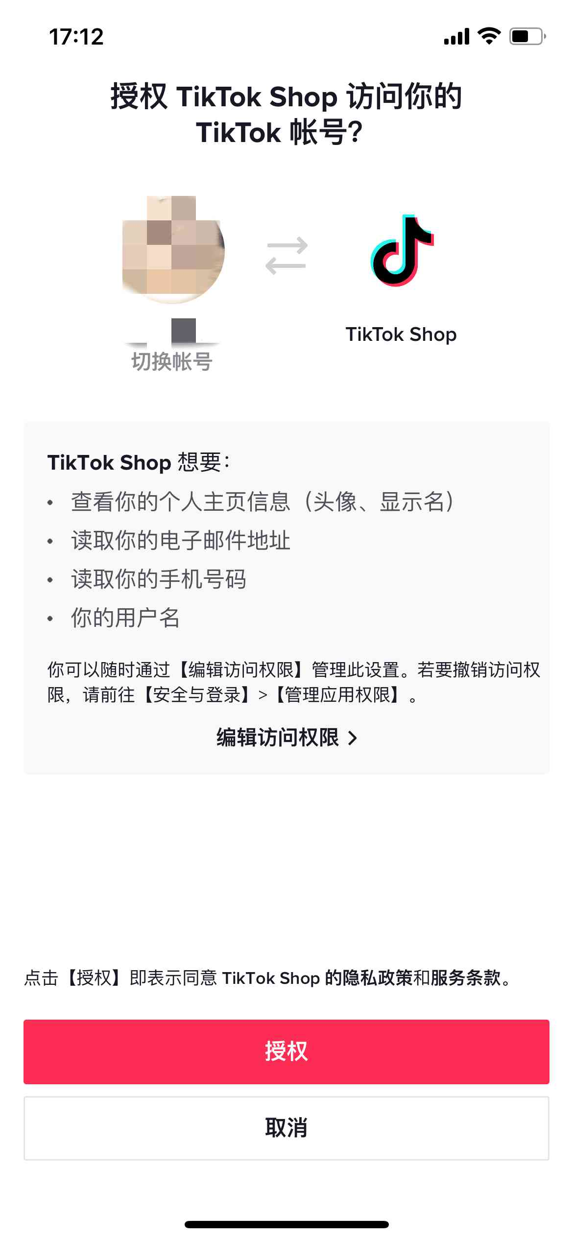 用希望绑定的官方账号在TikTok App内扫描二维码,点击“授权”