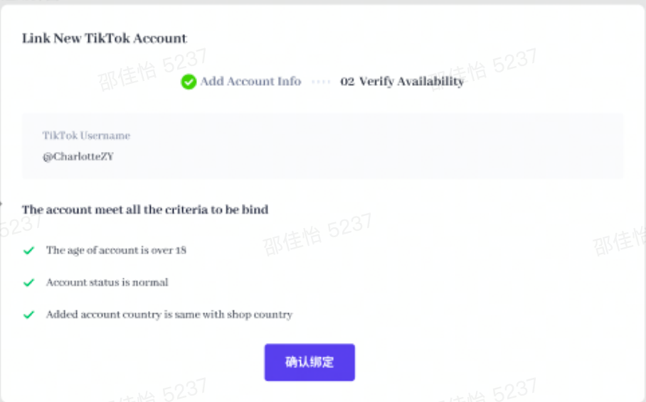 在Seller Center内,系统校验绑定账号的限制条件,均通过后,点击“确认绑定”后进入绑定关系的审核
