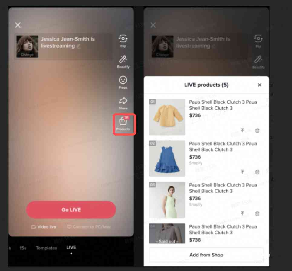 进行直播: 在相关的TikTok页面中,在直播前将商品上架,添加到直播中