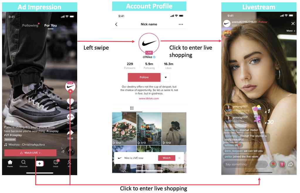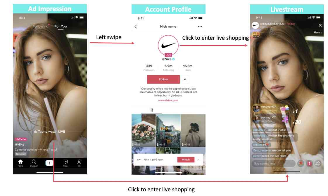 当收到一个直播购物广告时,用户可以点击进入直播,实时互动并进行购买