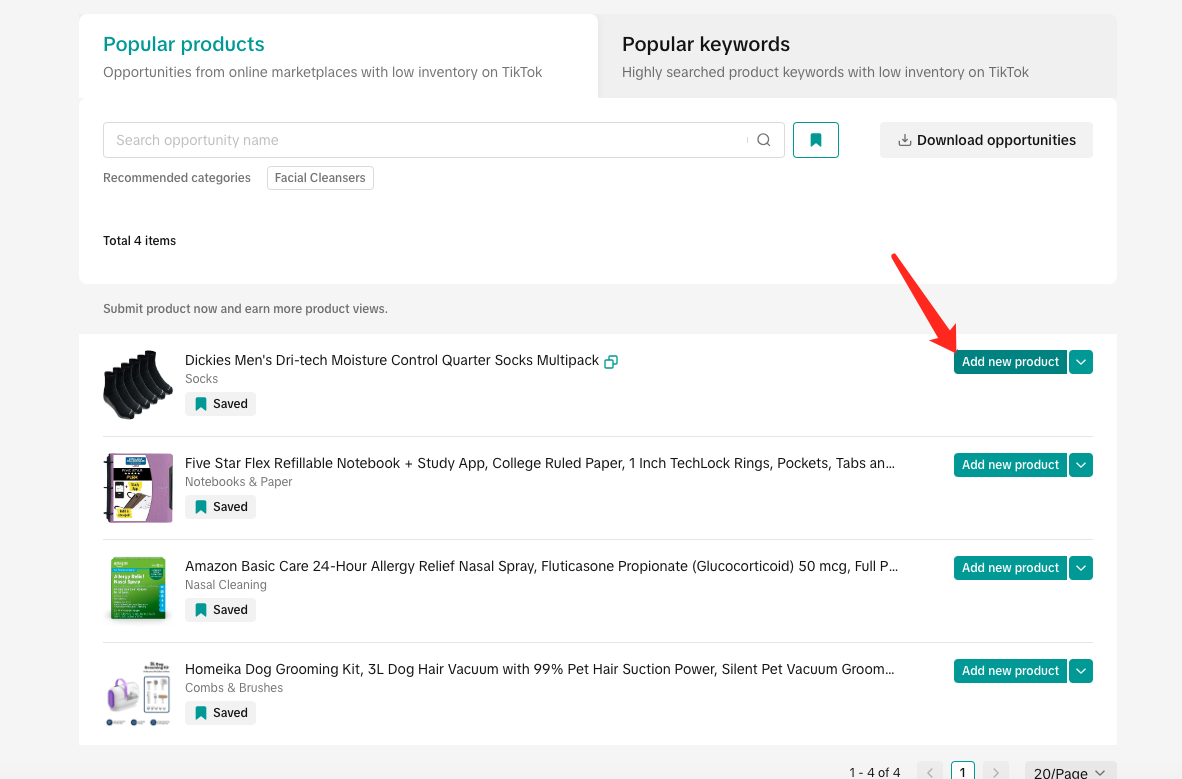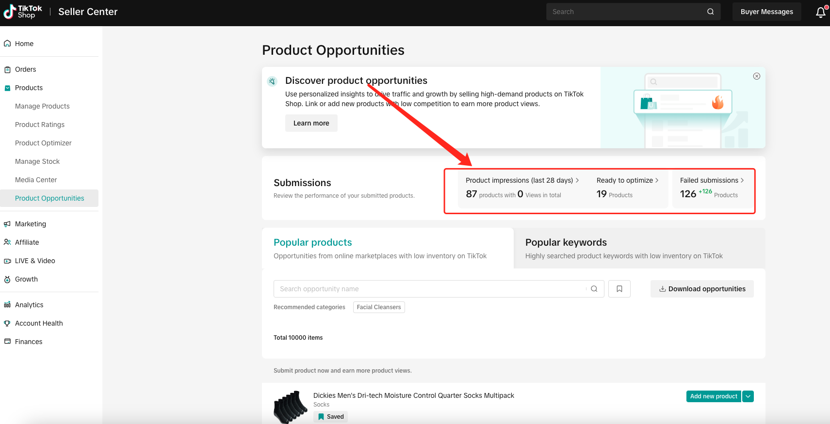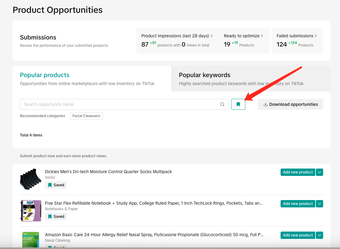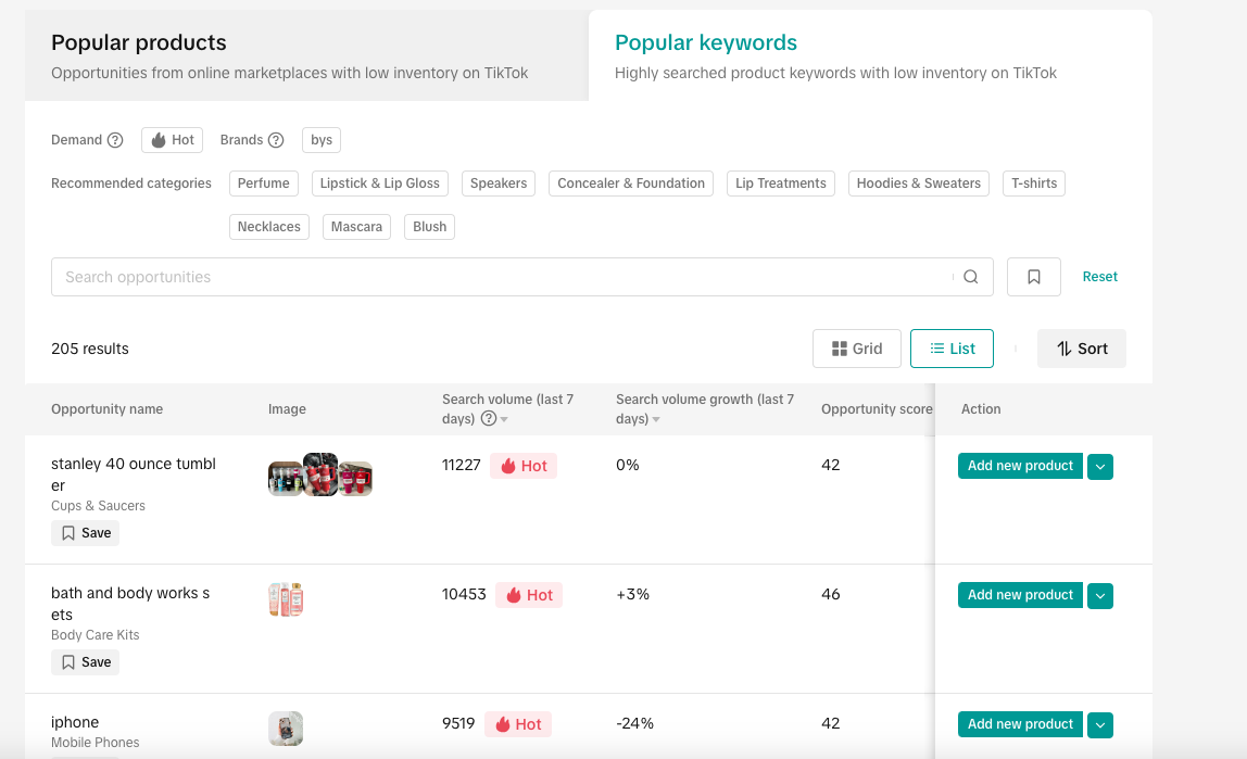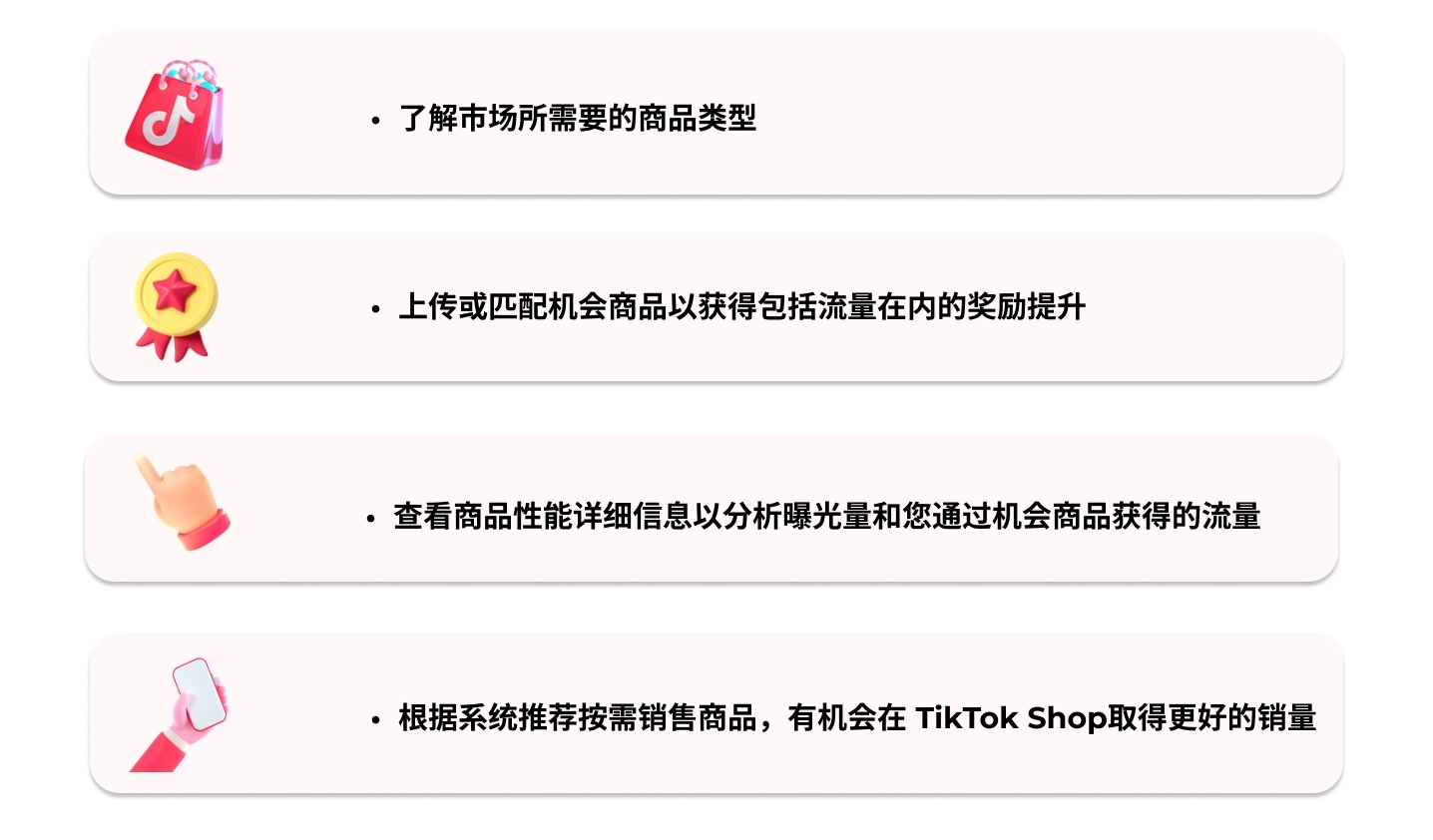 目前TikTok Shop提供两种商机,分别是爆品商机和搜索商机