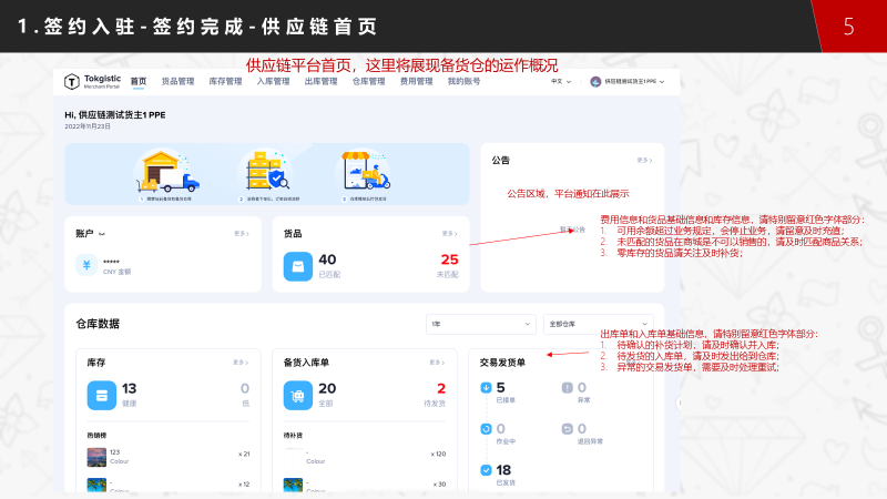 审批完成后,就可以正常使用供应链货主平台了。点击【首页】,展现备货仓的运作情况。