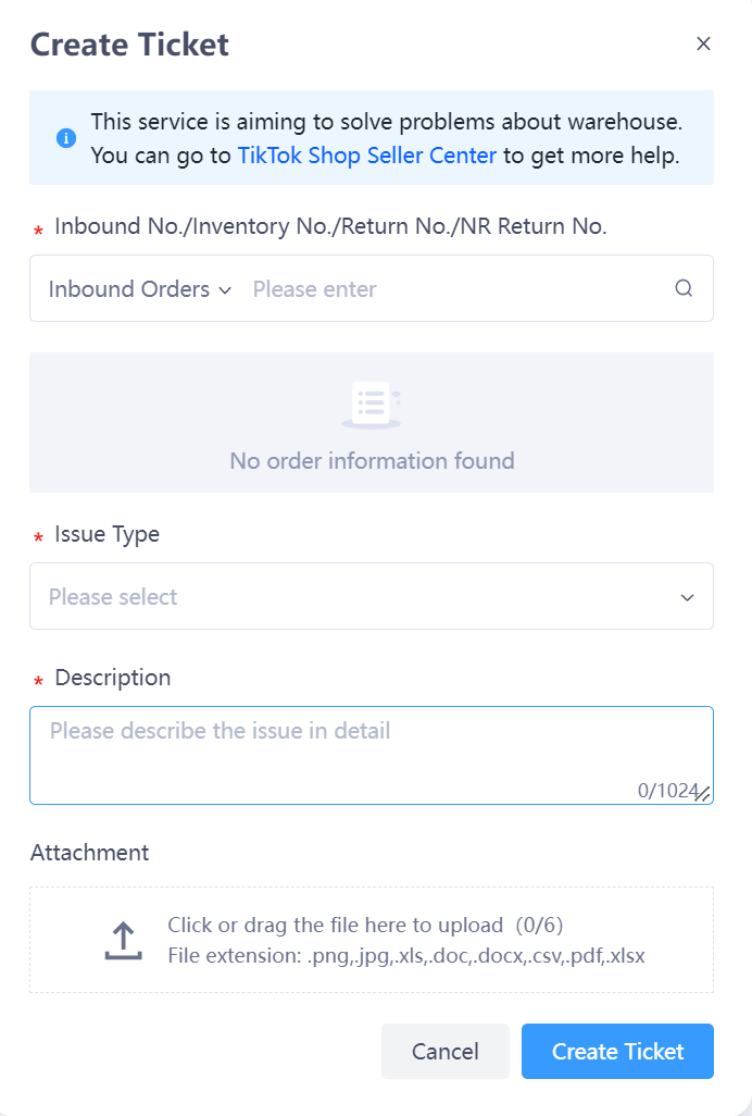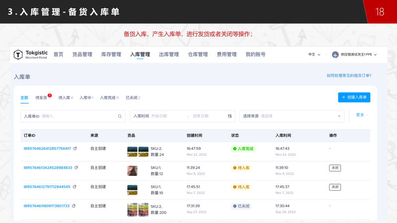 商家后台路径:TikTok Shop Seller Center - 供应链货主平台 - 入库管理 - 入库单 - 创建入库单