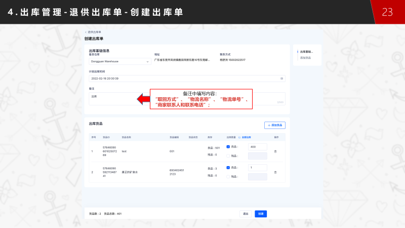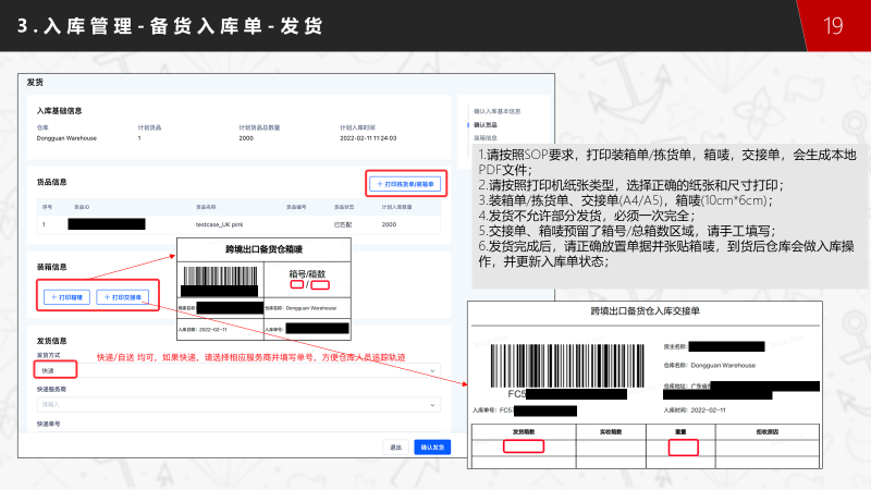 为防止仓检不合格的产品无法退回给商家,请务必在每个入库单中的备注栏填写退货所需信息!(如下图)