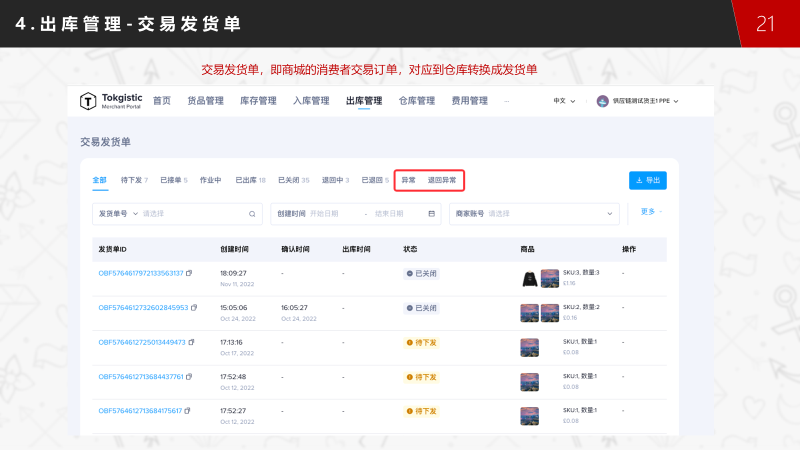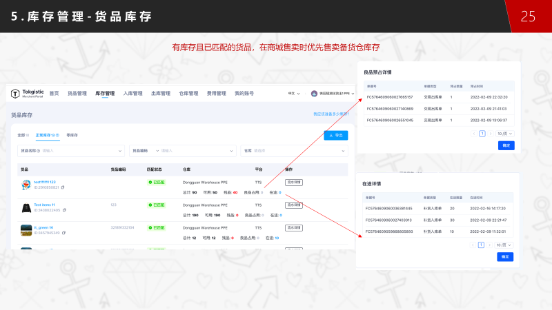 逆向:被海关或其他政府机构阻拦的包裹退回至仓库,逆向质检标准包括检查包裹外包装是否破损、SKU数量、商品包装是否破损、商品状态等,并按质检结果上架到良品或残次品库位。