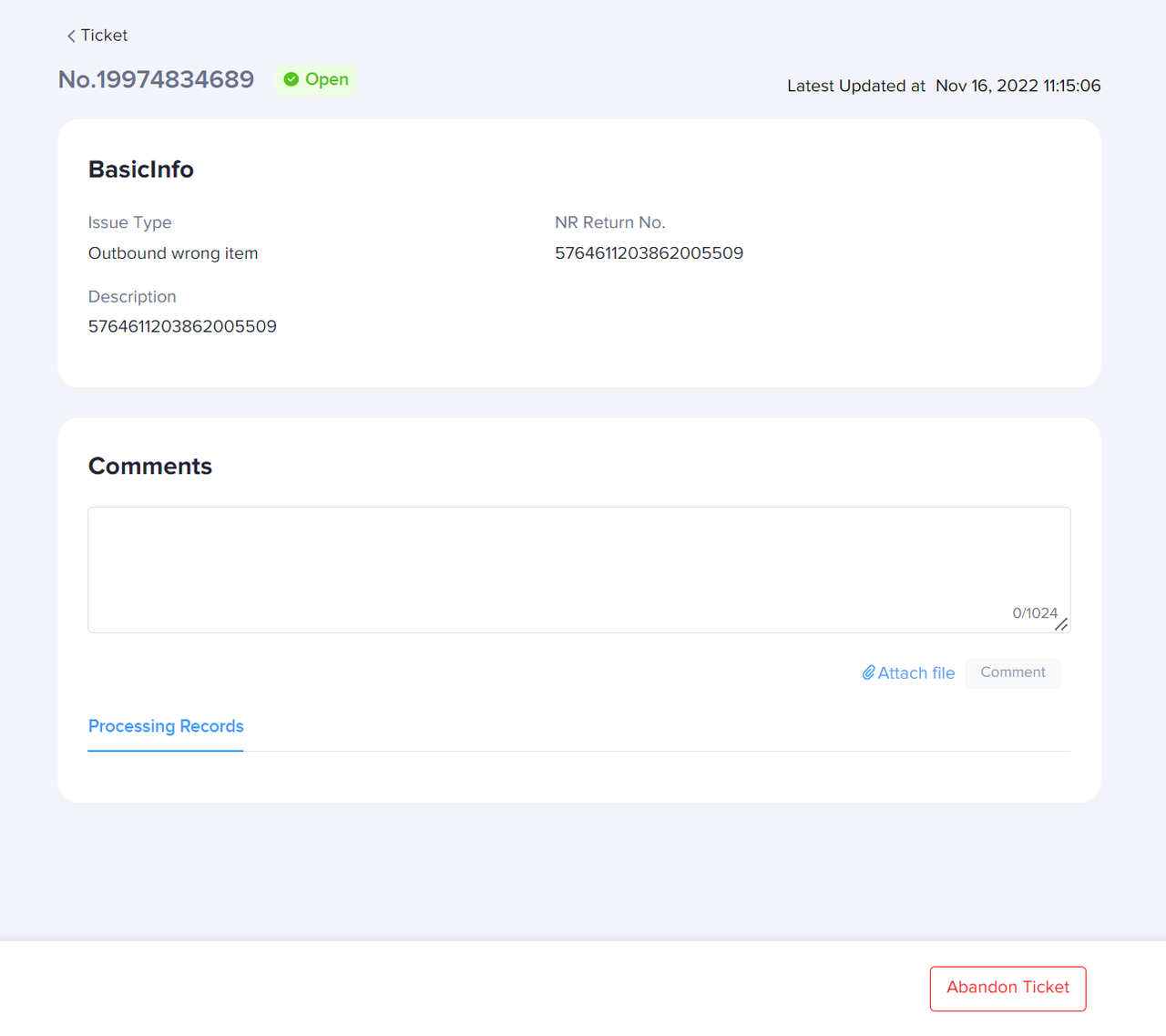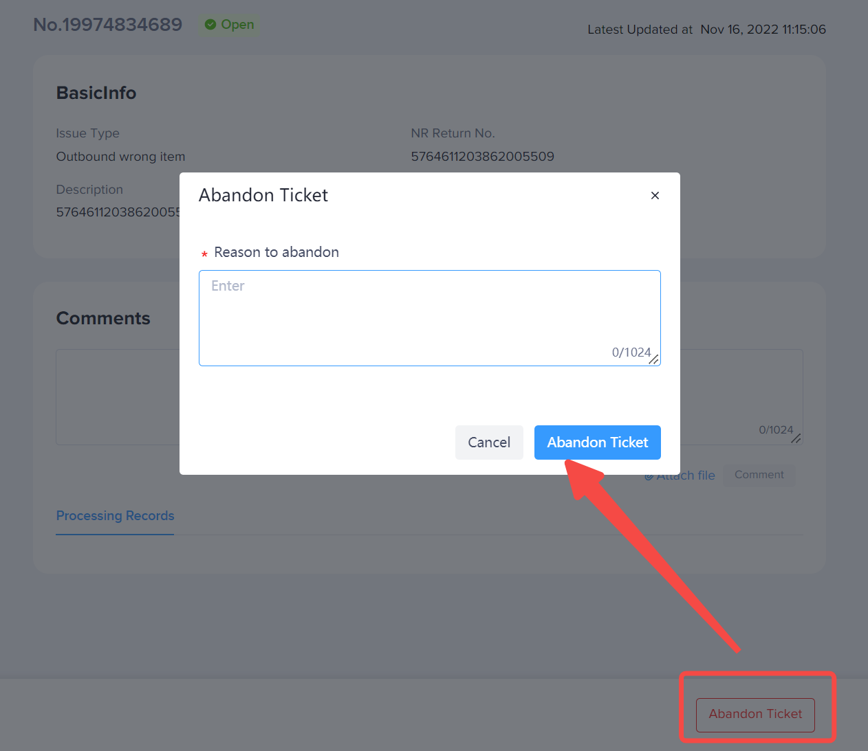 若创建工单有误,也可以点击废弃工单“abandon ticket”将该工单废弃