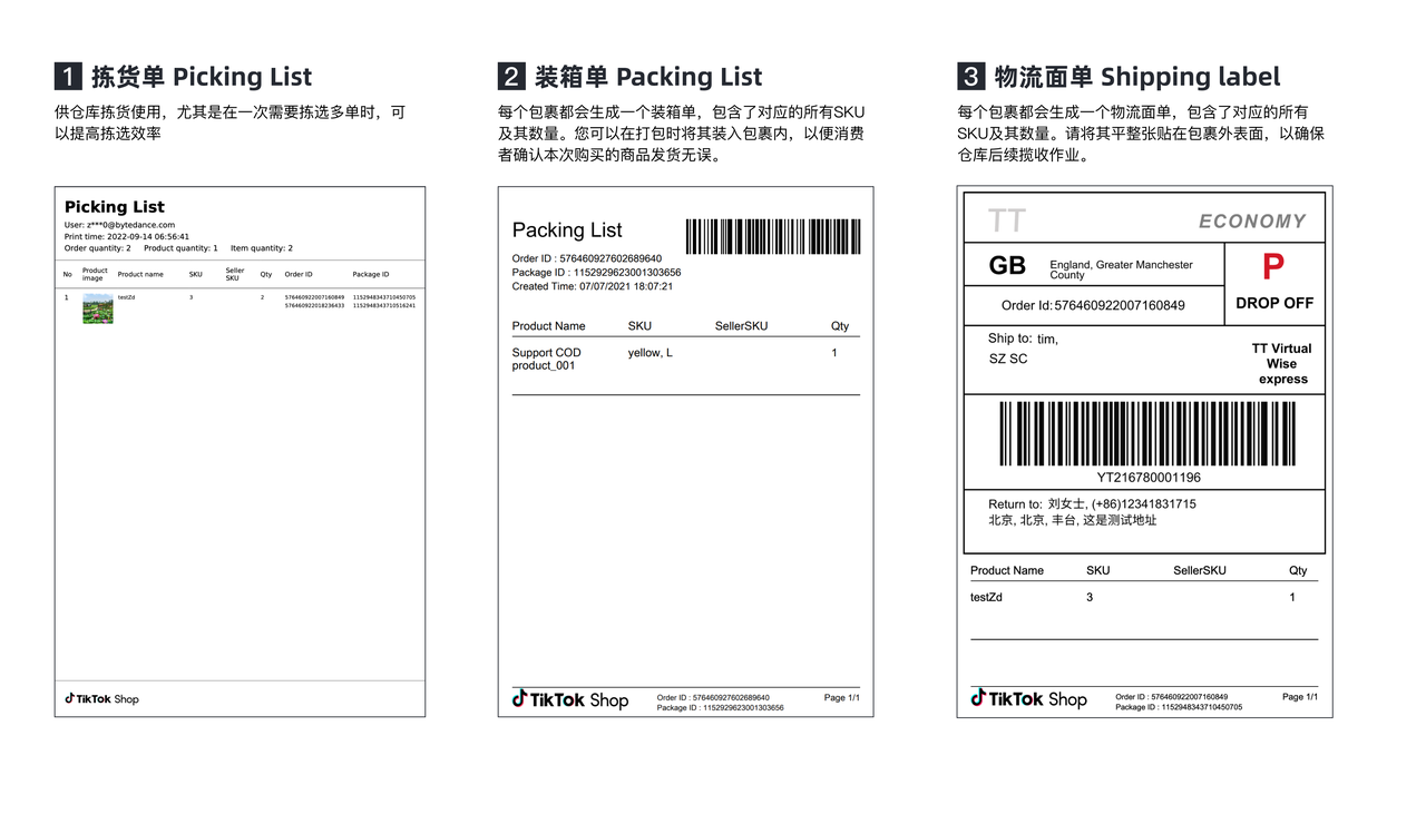 Tik Tok Shop拣货单、装箱单、物流面单分别是什么?