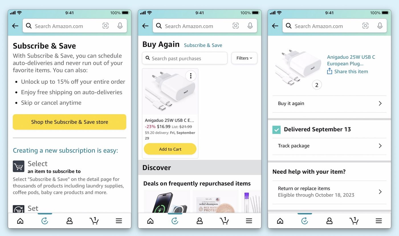 事实上,亚马逊已尝试多种不同的方式来鼓励买家购买过去购买过的商品。例如,亚马逊Alexa助手会根据买家历史订单向其推送潜在的复购商品。亚马逊的“订购省”服务,也旨在提高用户复购率。