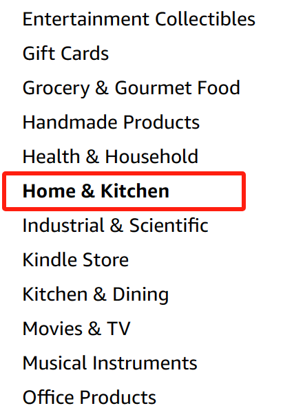 AMZ123了解到,截至发稿前,家居厨房(Home&Kitchen)类目下的小类节点仍未恢复。
