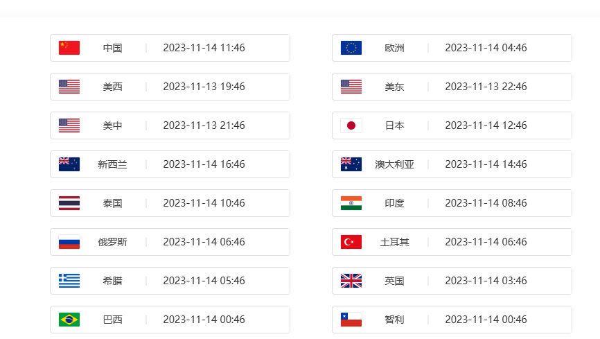 第三步,完成上述步骤,时间转换工具将自动换算其余国家及地区的对应时间。