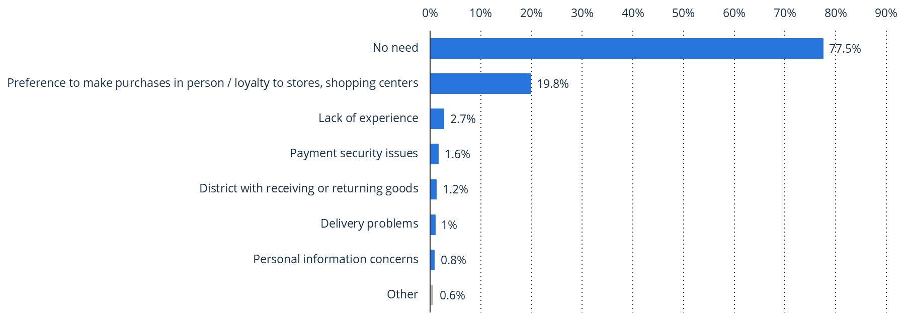 传统消费习惯制约:2024年调查显示,77.5%受访者认为无需网购,19.8%受访者倾向于线下购物,对传统商店忠诚度较高。