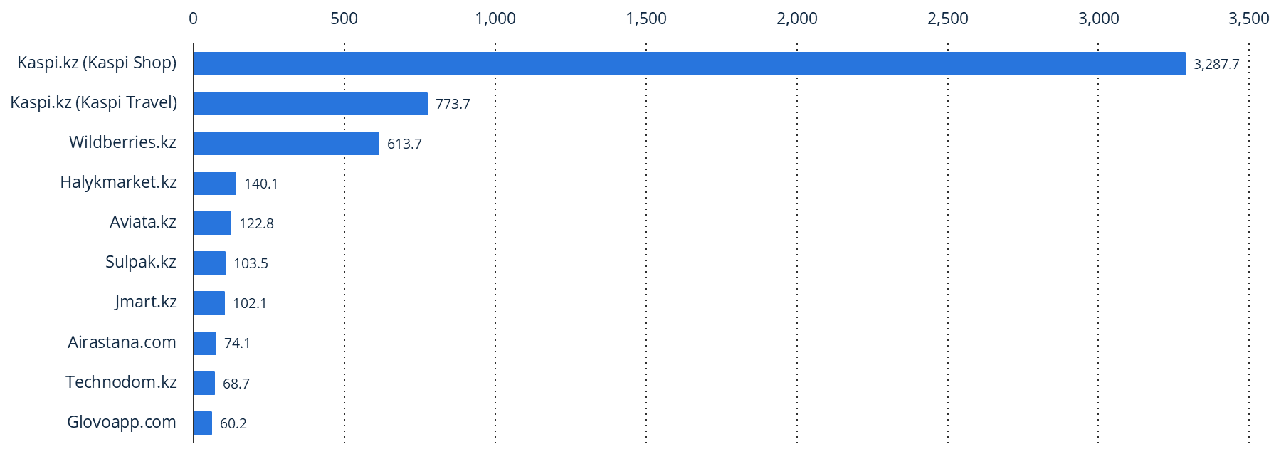 截至2025年7月,哈萨克斯坦拥有104个电子商务平台,其中,Kaspi.kz作为本土电商巨头占据主要市场。