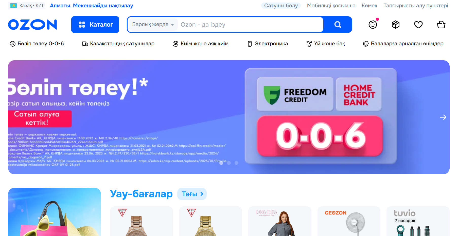 哈萨克斯坦五大电商平台之一。数据显示,2023年平台消费者数量达50万,同比增长6.5倍至,订单量同比增长16倍。通过6个物流中心及FBO(海外仓,可实现1-3日达)、FBS(自发货)模式,物流服务覆盖全国偏远地区。