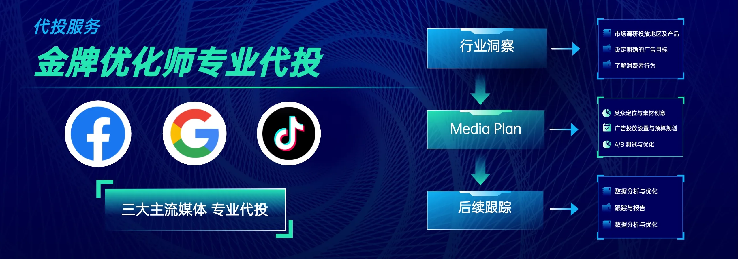 3、代投:金牌优化团队1V1服务,从开户到素材全流程托管,ROI透明可追踪