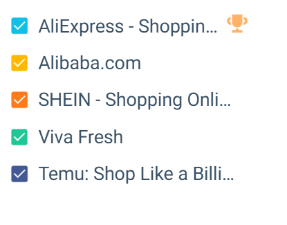 另外在iOS端,最受欢迎的购物APP为速卖通、阿里巴巴国际站、SHEIN、Viva Fresh、Temu。