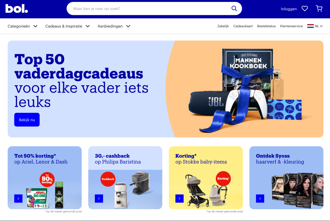 Bol.com是荷兰最大的电商平台之一,也是比利时、卢森堡最大的电商平台。涵盖书籍、电子产品、家居用品、玩具等多种类别,商品种类丰富,购物体验便捷,客户服务优质。它在荷兰和比利时有超过750万的客户。它的运营模式与亚马逊类似,直接销售产品给消费者,也接纳第三方卖家。截至2025年1月,该网站拥有1.6万个卖家,并销售超过1500万种不同的产品,覆盖20多个品类。
