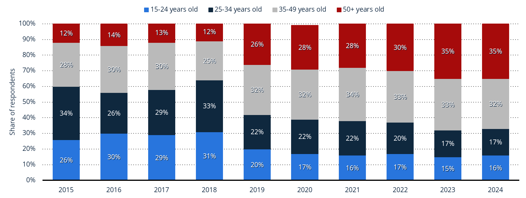 从人口结构看,波兰在线消费者中,女性占比51%,购物频率高于男性;年龄分布以中老年人为主,调查显示,2024年波兰50岁以上网购群体占比35%,35-49岁群体占比32%。