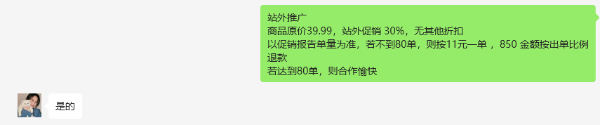约定好站外推广,不足80单的话按单量退钱,结果一单不出,然后不认账!!!