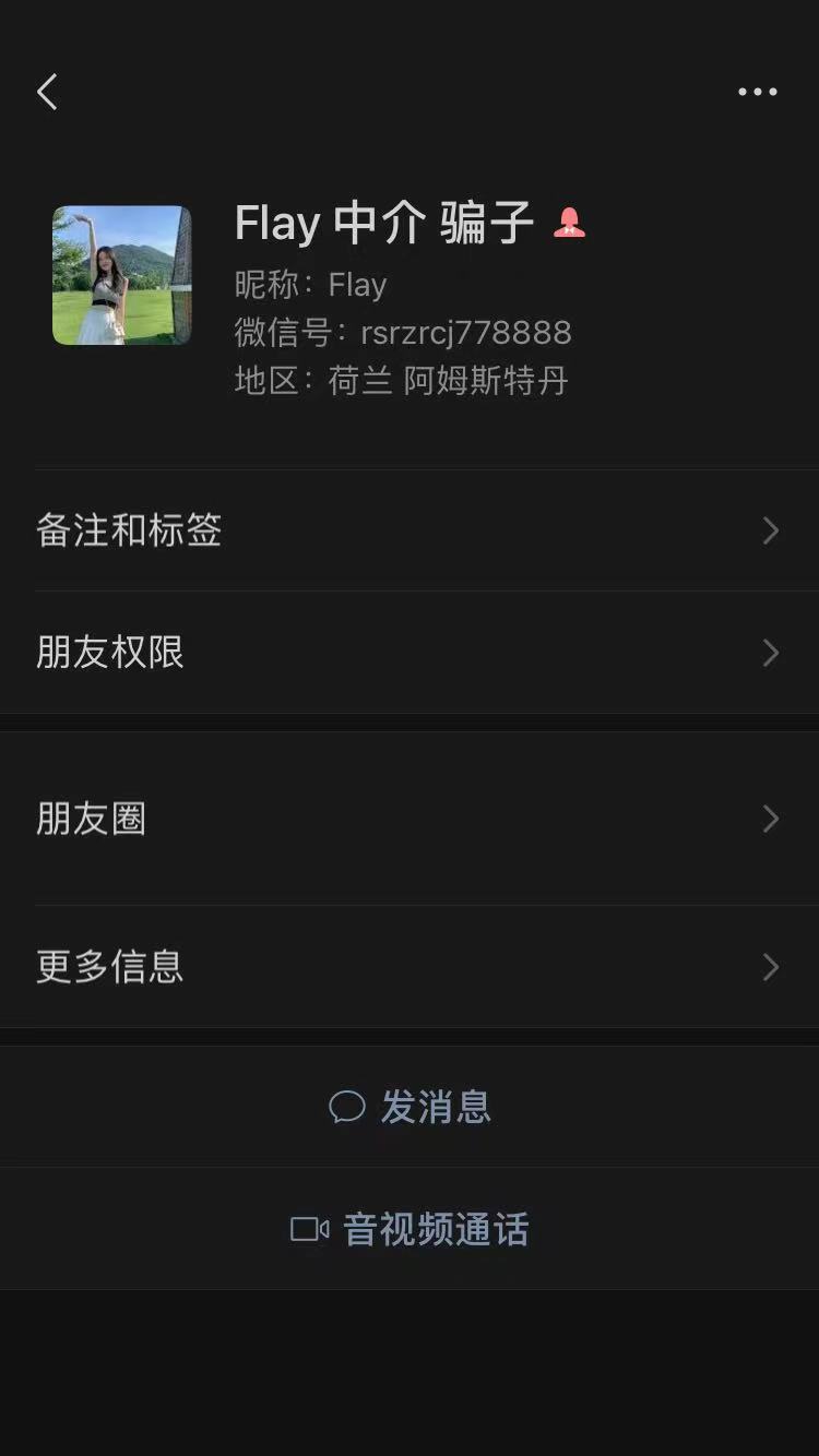 这个人是中介,转账后,过了几天有买家找上门来要钱,说没返款。之后一直没回信息,多次发信息后直接删除好友。另外一个微信号是 Lyyy-0522 微信名叫A paper