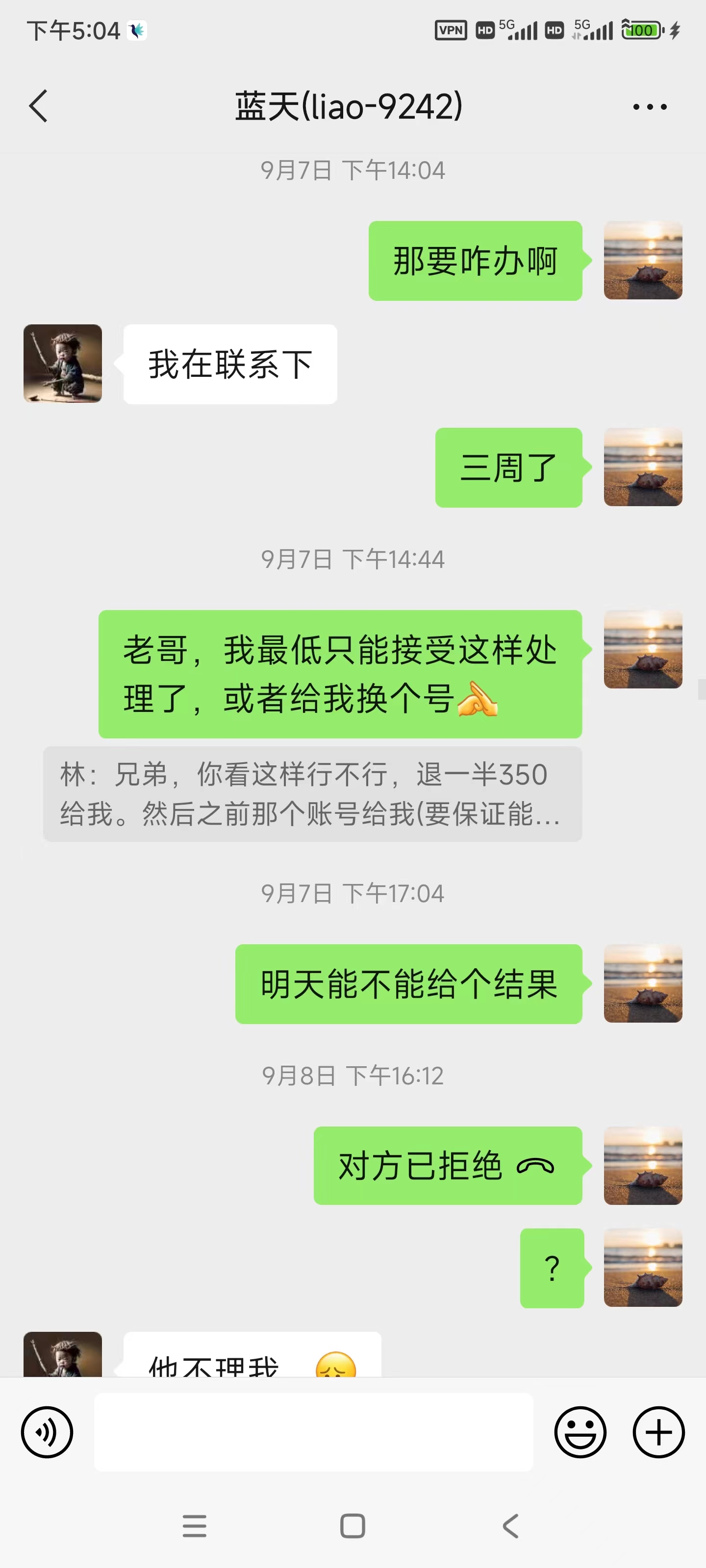 在该服务商那里购买了一个炮灰账号,结果号刚发给我登录就是死的,无法正常操作,之后一直不给我退款,推辞说号是从别人那里买的,不是他的没法退