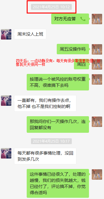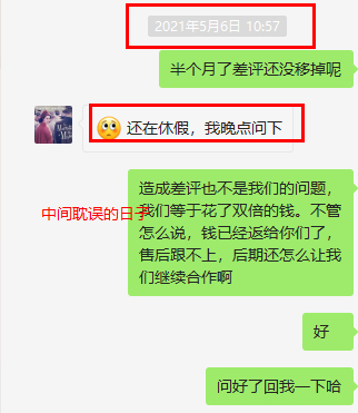 由于自己没有擦亮眼睛找了个黑中介下单,结果黑中介反馈完单号带着本金和佣金跑了。于是这个所谓的一手服务商来给我们店铺差评,并且给我们发邮件留了联系方式,后来我们把事情弄清楚之后把黑中介卷跑的钱又给服务商重新结算了一遍。当时说把差评删掉,对方说可以,后来跟我说账号风控了无法登陆,导致这个差评一直搞不掉,然后售后自己给我们一个方案说给我操作report abuse,已经一个月了,0反馈,0进度,收了钱差评却搞不掉,我真的很不懂,天天比姐夫团队还要忙???手里有多少单子要接???难道售后的单子不应该逐一着重处理??