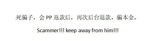 indianareynolds36@gmail.com,骗子买家,收到PayPal转账后,还退货退款,还改差评。