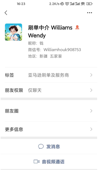 中途我有发现情况不对的时候开视频找骗子1,发现她的样貌竟然是印度/孟加拉/巴基斯坦人的女人长相,因为有穿鼻环,我问他为什么用一个老美的女的头像做自己的微信头像,她说这个是她的买家兼好朋友的头像,我才知道她原来是顶着别人头像冒充自己是老美来行骗的,怕我不给返钱所以临时换成了自己的真实头像,拿到4单本金之后就开始频繁换头像换所在地,然后拉黑我,我气急败坏中文乱骂一通之后也拉黑了她。后来我回顾疑点,她给我她和所谓第4个买家的截图对话里边,她自己的头像竟然和对方是同样的,这里明白的人应该都知道了,两个人的对话其实是一个人在操作,而且这个所谓买家根本不是后台联系我的那个人,后台联系我的应该是个中国人。